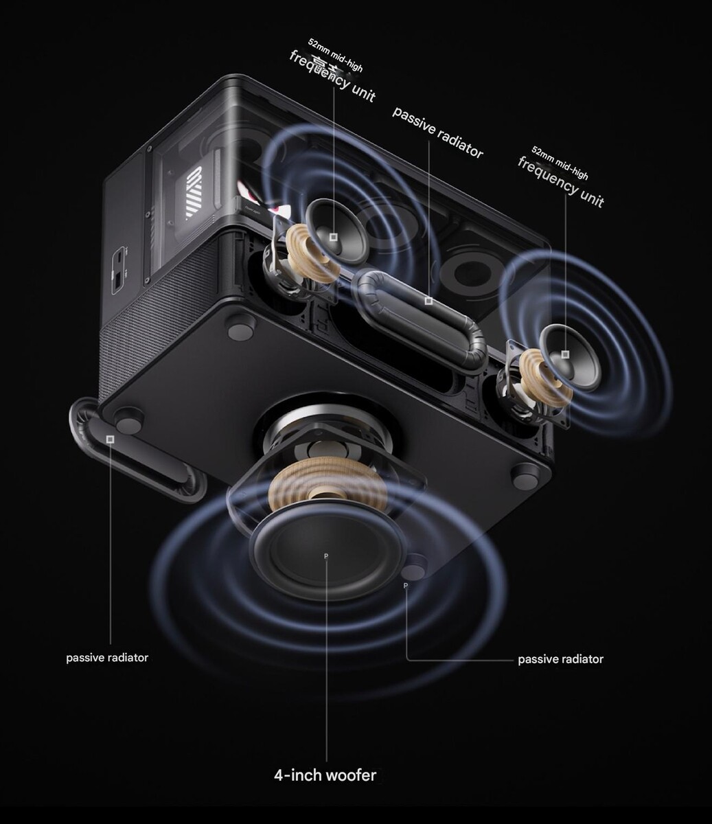 The lower half of the speaker houses two 52mm full-range drivers, a 100mm woofer, and two passive radiators to enhance the bass. Edifier also incorporates a 60-watt amplifier. The speaker can be connected to a PC or smartphone via a USB cable, AUX or Bluetooth 6.0.