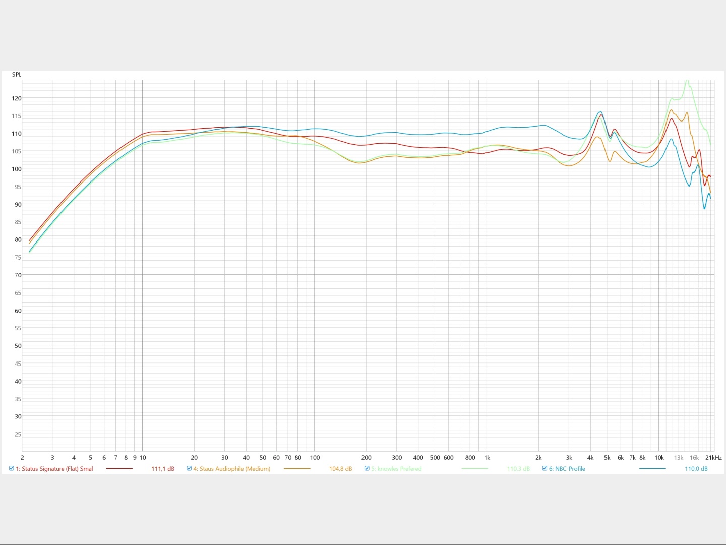 For a more objective analysis, we took some measurements using the miniDSP EARS system in combination with the Room EQ Wizard (REW) analysis software, as you can see below. The results were, once again, excellent. With the factory “Status Signature” setting, the bass was emphasized, with somewhat weaker mids and well-represented highs. However, strong and unwanted resonances occurs at 4.5 kHz, 5.6 kHz, and above 10 kHz. With a custom EQ, nearing ideal values can be achieved. Most users will be more than happy with the stock EQ but enthusiasts will be pleased to know that there's even more potential in the Status Pro X.