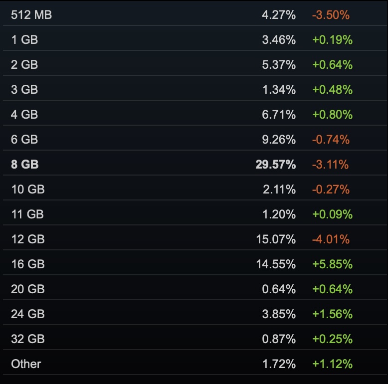 In a recent beta update for the Steam Client, Valve stated that certain issues were addressed which affected VRAM reporting, indicating that earlier surveys may have suffered from misreported data. Moreover, for systems with multiple GPUs, Steam will now only report the GPU with the most amount of VRAM.