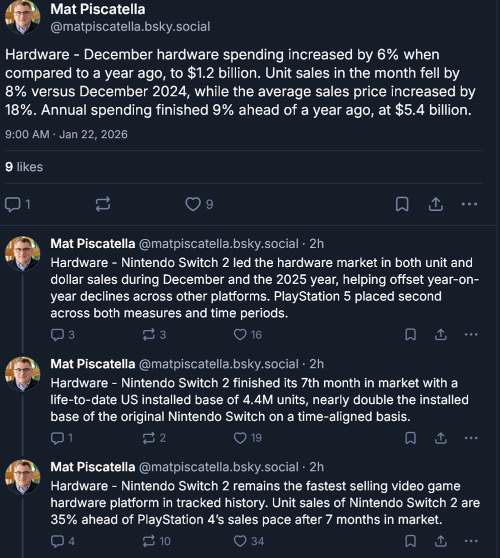 Circana December 2025 Switch 2 sales are shown (Image source: screenshot, Mat Piscatella Bluesky account)