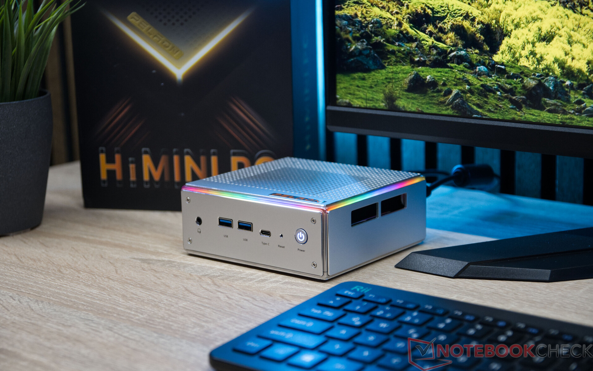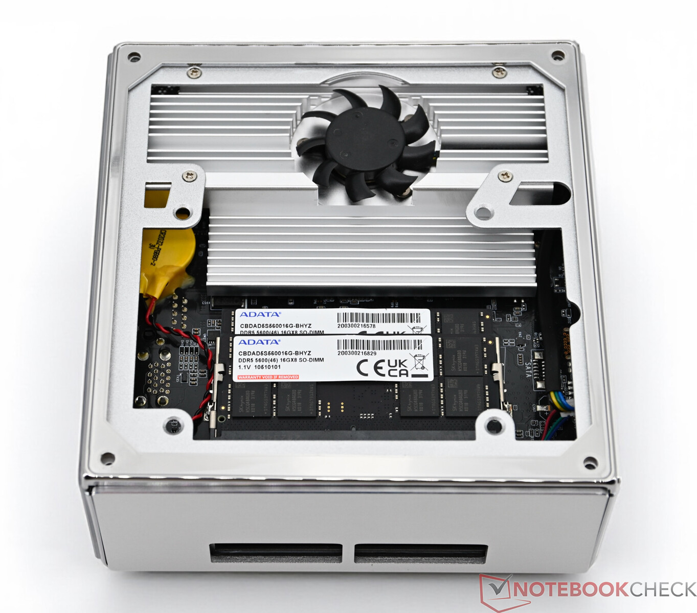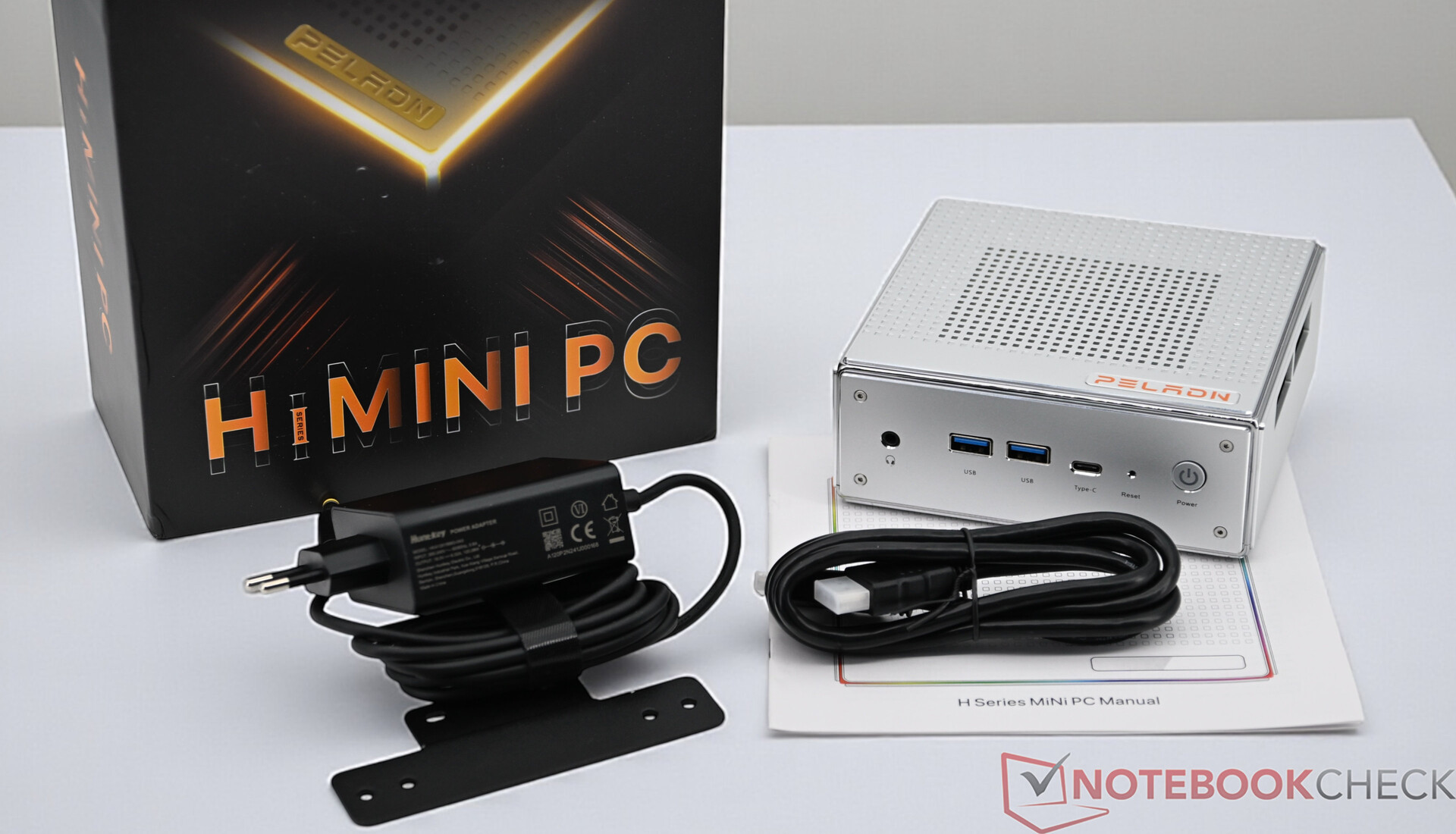 The case combines a lot of aluminum with little plastic and gives a very high-quality impression, which is reflected in its high weight. In practice, the compact design is impressive, as the mini PC can be integrated inconspicuously into office or living room environments. Under load, the cooling system remains pleasantly quiet and keeps temperatures at a safe level. The energy efficiency is particularly positive compared to the competitors in the test.