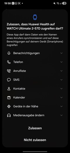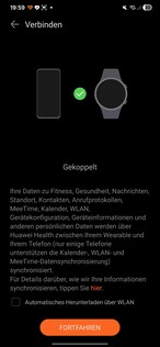 In testing, the smartwatch was detected immediately and paired without issues. Several permissions must be granted during setup. A Huawei ID is also required. At the end of the process, a tutorial launches on the watch. One thing stands out: every app opened on the smartwatch requires its own separate data-processing consent.