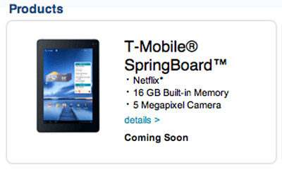 The SpringBoard tablet is expected to retail for $200 or less with a data plan, which would be quite the bargain for a dual-core Honeycomb tablet. Note, however, that the tablet has yet to be officially announced for T-Mobile, so the launch date is still a mystery. Electronista is predicting an official unveiling this coming week at the CTIA expo in San Diego.