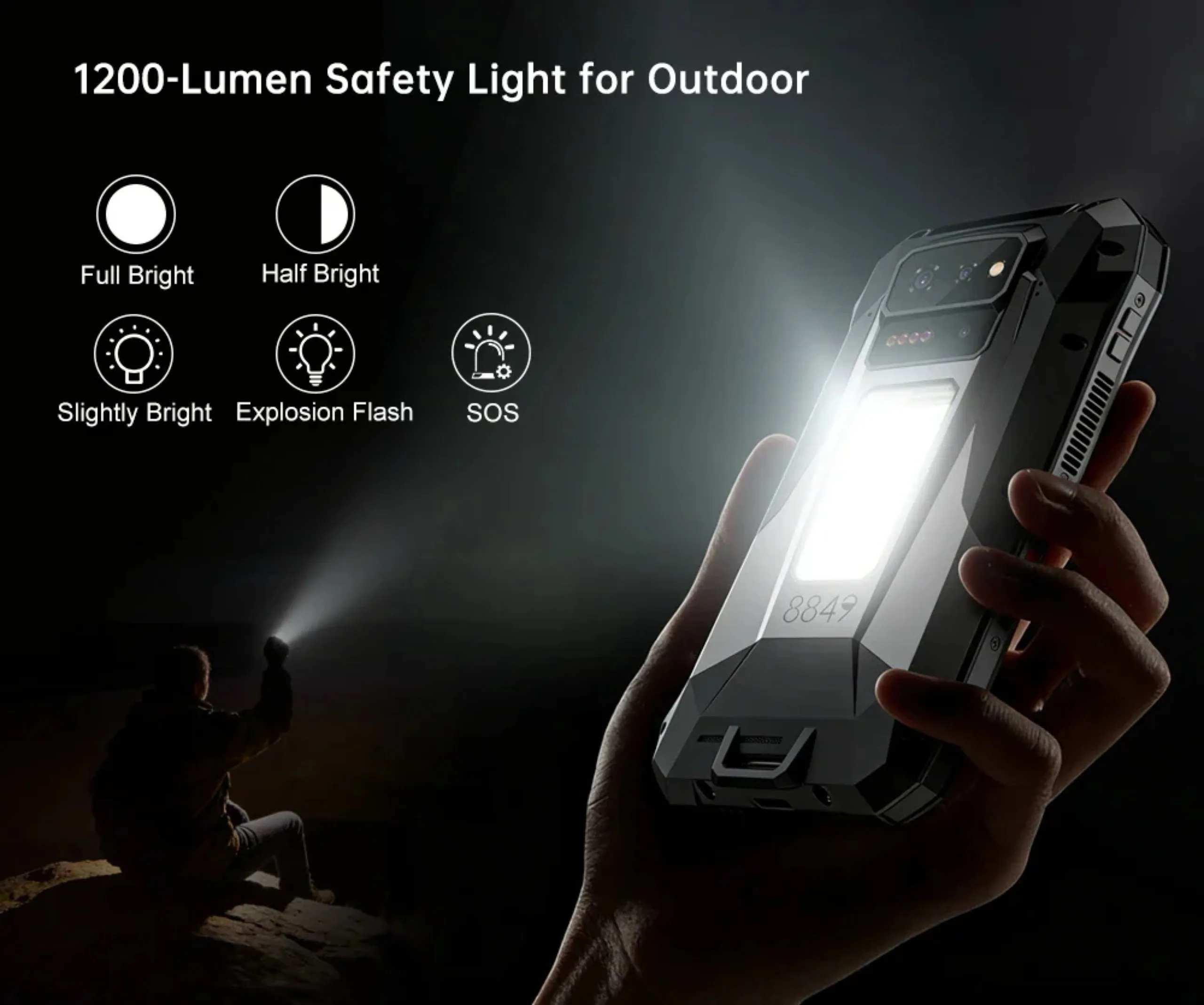 The huge 17,600mAh battery allows a projector runtime of 5 hours at maximum brightness on a single charge. The smartphone can be recharged via USB-C at up to 120 watts, while other devices can be charged at up to 10 watts. Another special feature is the large camping light on the back, which has a maximum brightness of 1,200 lumens. Meanwhile, the 64 megapixel night vision camera is paired with four infrared LEDs so it can still take photos in complete darkness.