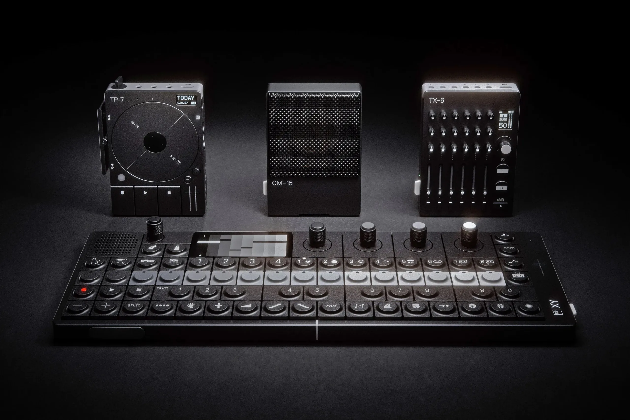The company has announced a new textured, matte-black finish for three devices: the TP-7 recorder, the CM-15 condenser mic and the TX-6 mixer. The new colourway perfectly matches the recently launched OP-XY synthesizer sampler sequencer (curr. $2,299 on Amazon)
