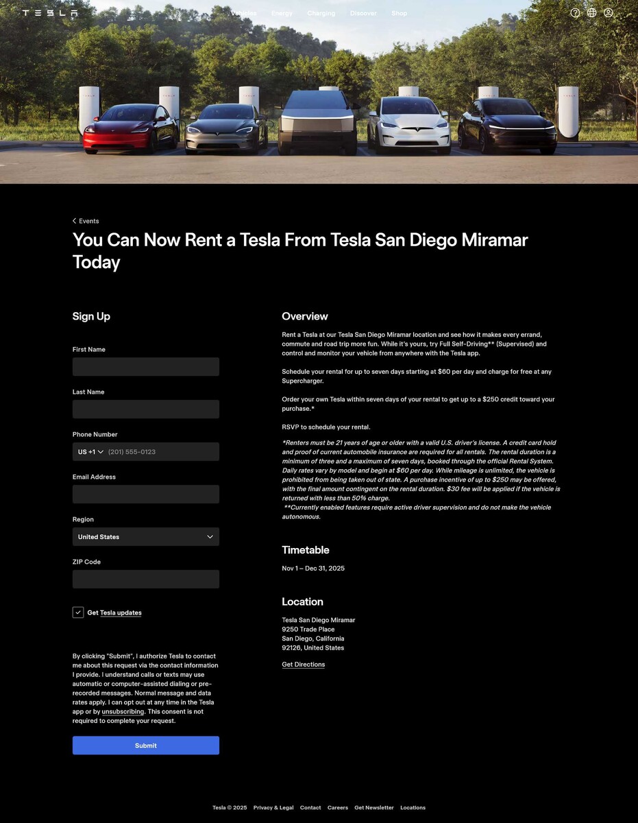 Tesla is aiming to attract new customers in the US with its newly launched rental program while reducing inventory. The trial run will start in selected Tesla stores, such as in San Diego, and will initially be limited to the period from November 1 to December 31, 2025. It appears Tesla is attempting to boost sales figures before the end of the year. Whether the promotion will be extended to other markets remains unclear.
