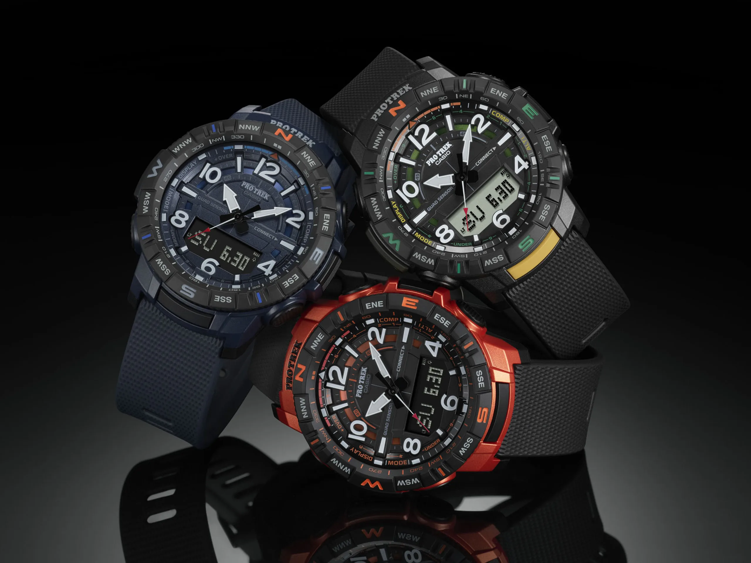 This new Casio also comes with a compass-bearing sensor, a barometric pressure sensor for altitude and a temperature sensor. This allows for such features as Route log, which incorporates the PRT-B50's altitude data and GPS data from a connected phone.