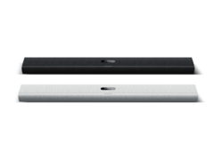 The soundbar has 11 drivers in total, weighing 4.6 kg (~10.1 lbs) and measuring 115 x 6.5 x 13 cm (~45 x 2.6 x 5-in). The device is covered in wool fabric by Kvadrat, with aluminum details and an LCD touchscreen that tells you what is playing.