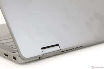 When in the closed position, the Latitude 9440 2-in-1 looks similar to most other Latitude models. When opened, however, the changes and XPS inspirations become obvious. The Zero-Lattice keyboard has been lifted directly from the XPS 13 Plus while the clickpad now has defined edges which was a major criticism of the "invisible" clickpad on the XPS 13 Plus. Meanwhile, the row of touch-sensitive buttons on the XPS has been reimagined and repositioned along the top half of the clickpad instead. The up-firing speakers along the sides of the keyboard have been carried over from last year's Latitude 9430 2-in-1.
