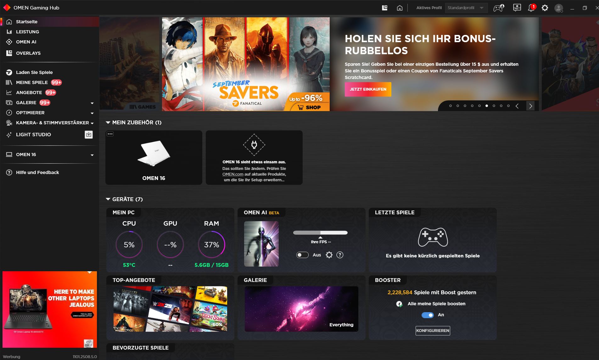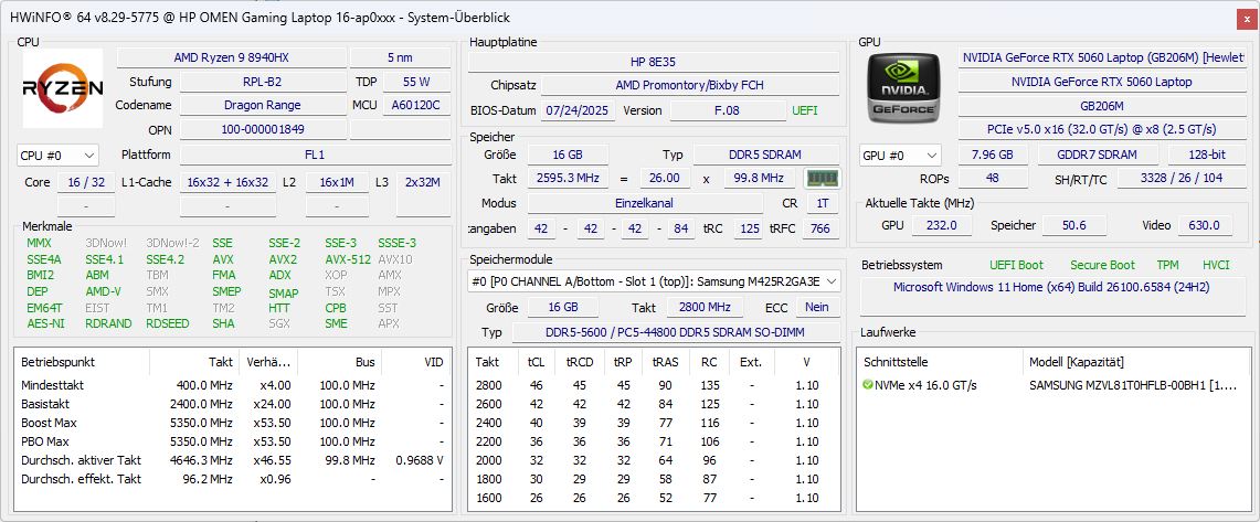Our Omen 16 test configuration comes with Ryzen 9 8940HX, RTX 5060, 16 GB RAM, and a 1 TB SSD. It’s not the cheapest RTX 5060 laptop out there, but the pricing still seems like a good middle ground between budget and performance.