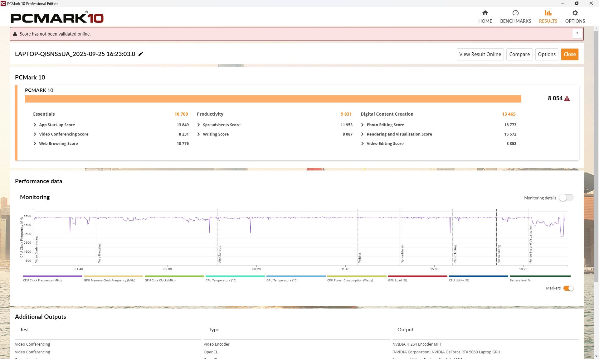 Plugging in an external display activates the dedicated GPU, which increases idle power draw. Under load, power consumption is slightly higher than average. Efficiency isn’t its strength, but the 230W power adapter is well-sized.