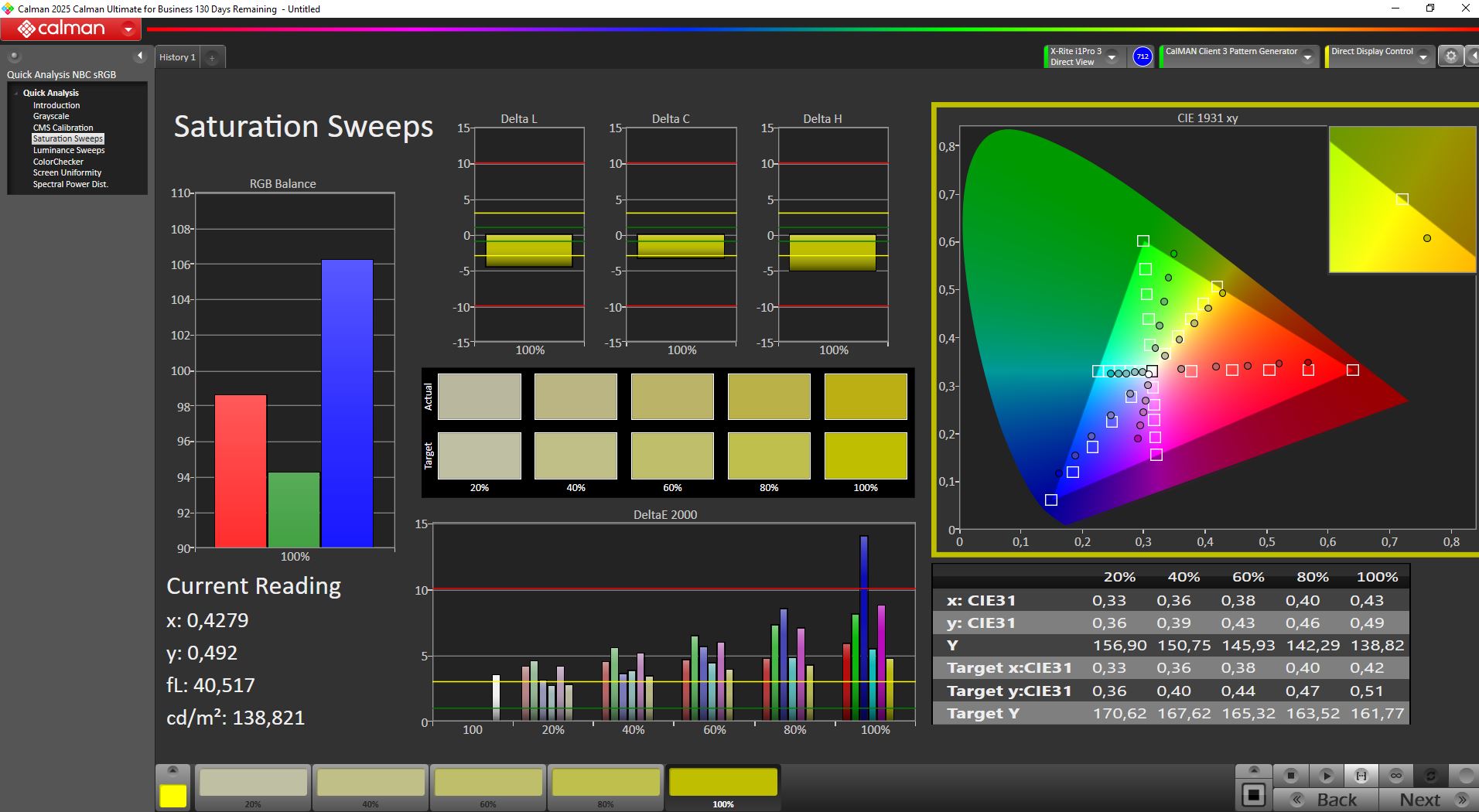 AdobeRGB 1998 Coverage (%) | 38.7 | 70.6 82% | 98.3 154% | 73.6 90% | 69.1 79% | 72.1 86% |