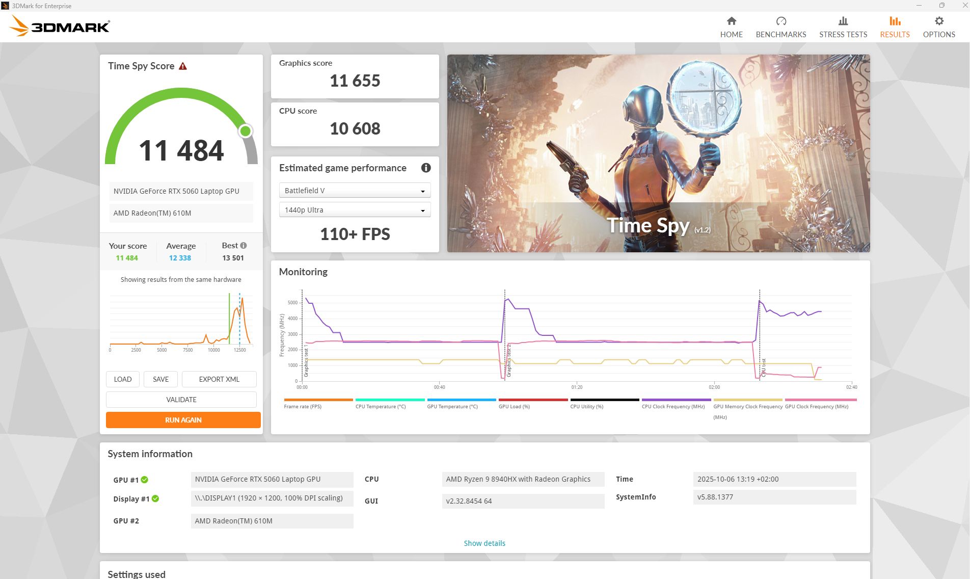 HP Omen 16-ap0091ng R9 8940HX, GeForce RTX 5060 Laptop, 70 Wh | HP Omen 16 (2024) i9-14900HX, NVIDIA GeForce RTX 4080 Laptop GPU, 83 Wh | Lenovo Legion 5 15AHP G10 R7 260, GeForce RTX 5060 Laptop, 80 Wh | SCHENKER XMG Core 15 (M25) Ryzen AI 7 350, GeForce RTX 5060 Laptop, 99.8 Wh | Lenovo LOQ 15AHP10 R7 250, GeForce RTX 5060 Laptop, 60 Wh | Alienware 16 Aurora Core 7 240H, GeForce RTX 5060 Laptop, 96 Wh | Average of class Gaming | |
