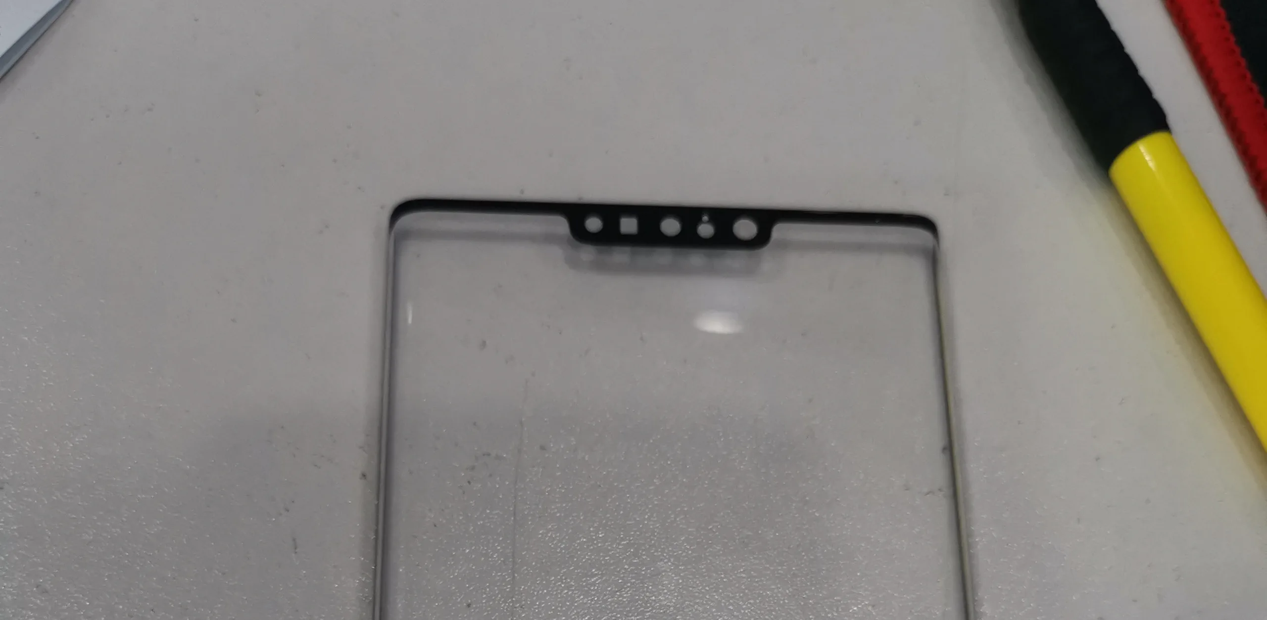 This apparent leak may seem regressive in 2019. However, should the object in this image prove genuine, it may have been a necessary evil for Huawei. The screen protector clearly exhibits cut-outs for 5 distinct sensors. All but 1 are round and are of different sizes, thus suggesting that at least some of them may be camera modules.