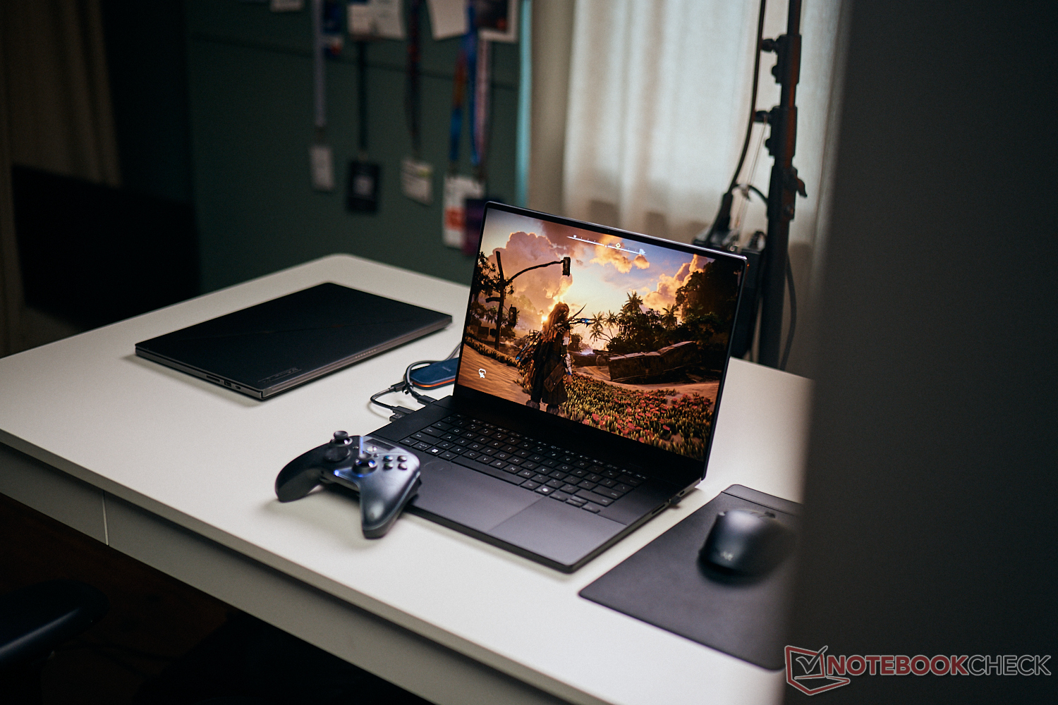 Just like the gamer ROG Zephyrus G16, the chassis of the new P16 is slightly thicker to make room for the improved vapor chamber cooling unit. The mobile high-end GPUs (RTX 5070 Ti, RTX 5080 or RTX 5090) run with a maximum TGP of 120 Watts and overall, the performance of the two siblings is basically identical. This also includes the gaming performance, even though the P16 does not support Advanced Optimus GPU switching. Compared to previous P16 models, you also benefit from more VRAM (12-24 GB depending on the GPU) when you edit pictures or videos. You also get up to 64 GB RAM, but it is unfortunately soldered and cannot be upgraded.
