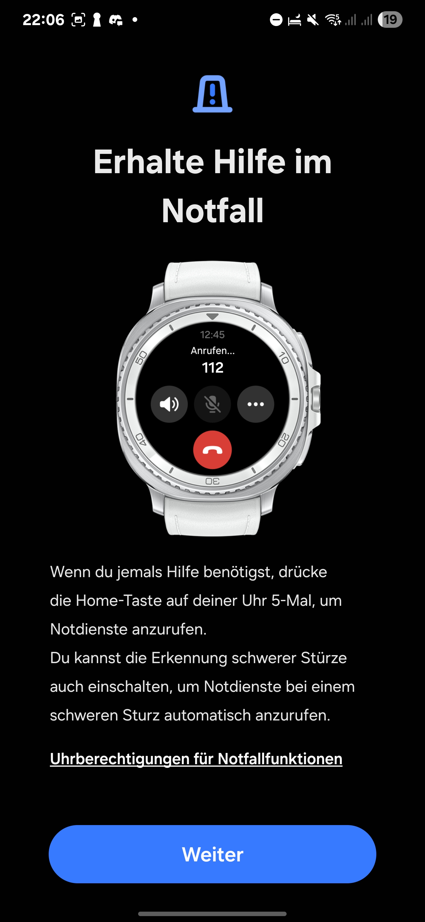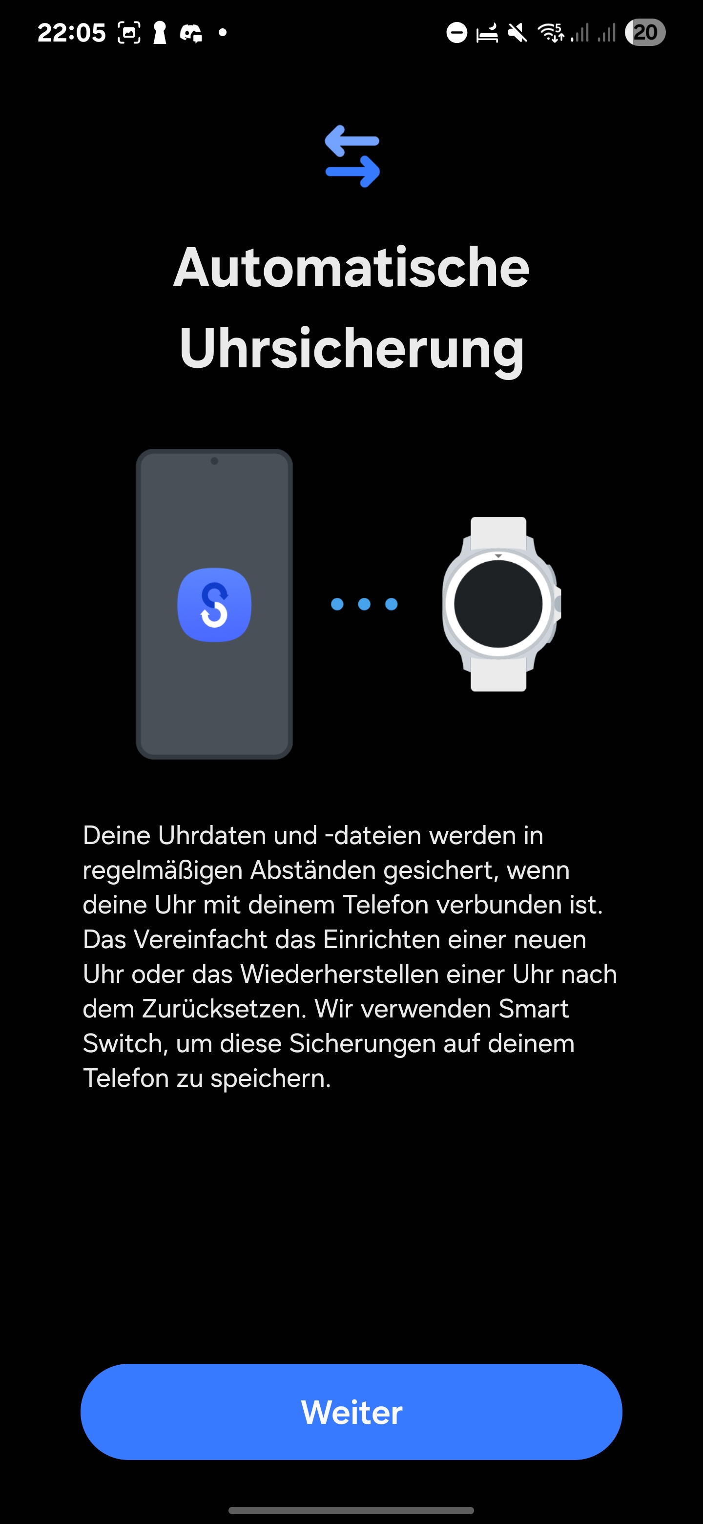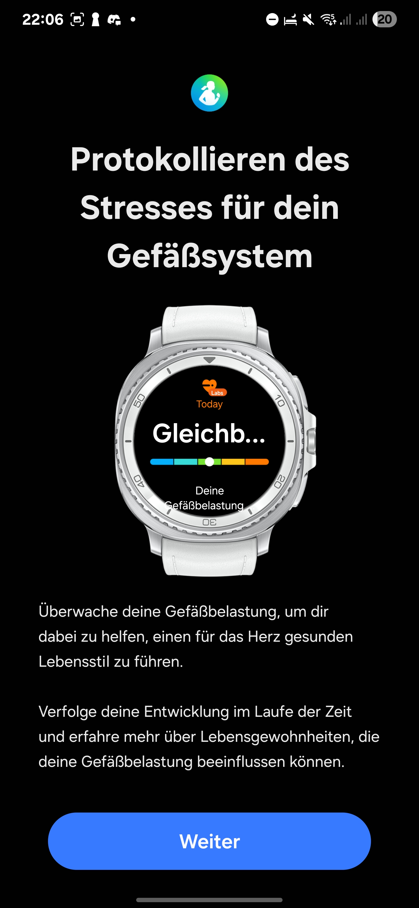During setup, users are asked about wrist orientation, health features, and basic preferences. Once completed, an overview appears in the app, and a short tutorial runs directly on the watch. All fitness data is managed through the Samsung Health app.
