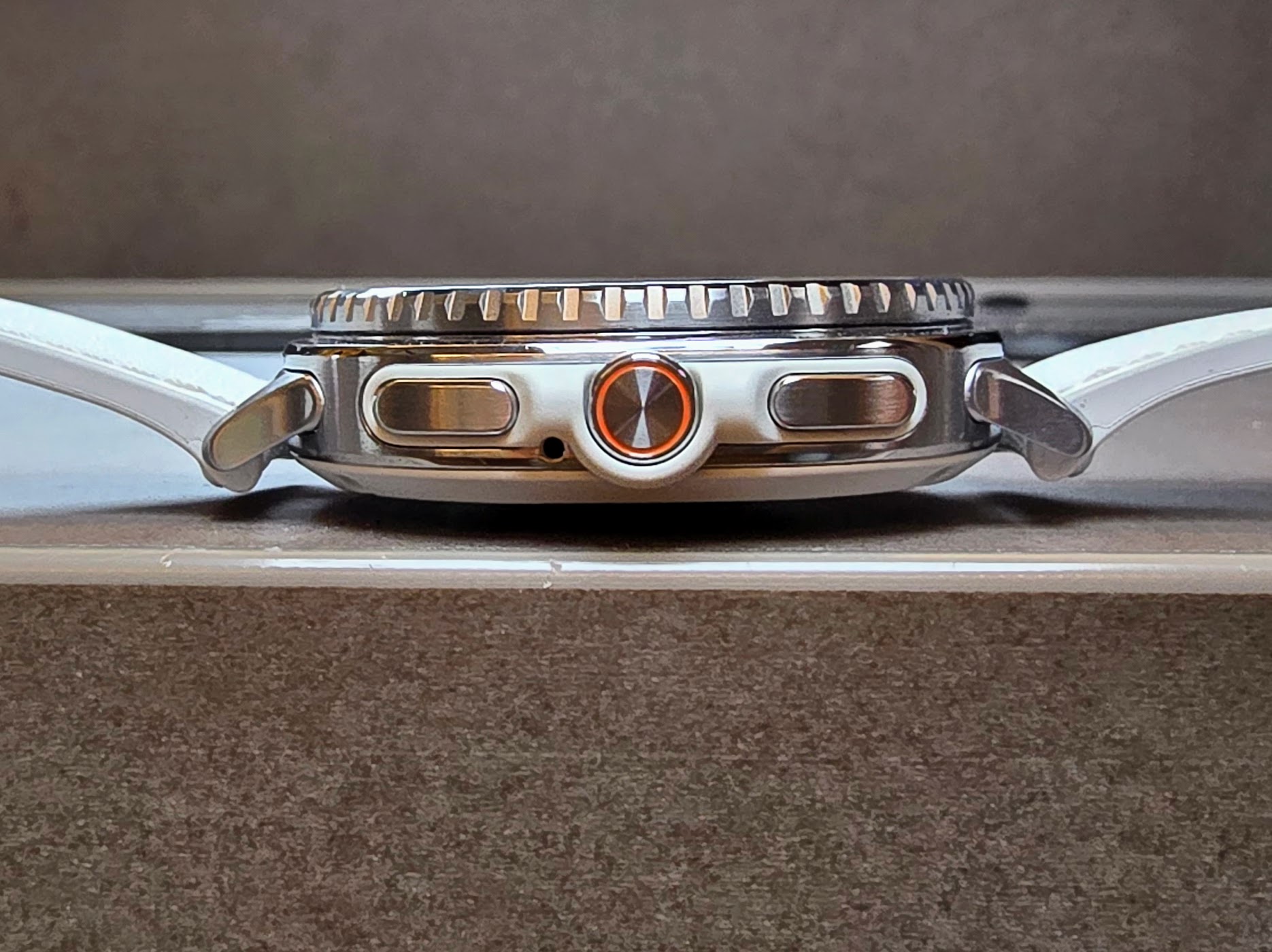 Visually, the Galaxy Watch8 Classic take cues from the Watch Ultra watch, combining both round and square design elements. It also inherits the Ultra’s extra “Quick Button.” The rotating bezel remains a defining feature of the Classic. Overall, the Classic looks noticeably bulkier than the standard Watch8.