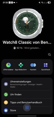 With a capacity of 445 mAh, the Galaxy Watch8 Classic’s battery is 10 mAh larger than that of the regular Galaxy Watch8. Combined with the slightly smaller display, this results in marginally longer runtimes. With all sensors active, automatic workout detection enabled, and the always-on display turned on, the Classic lasted about 33 hours before needing a recharge.