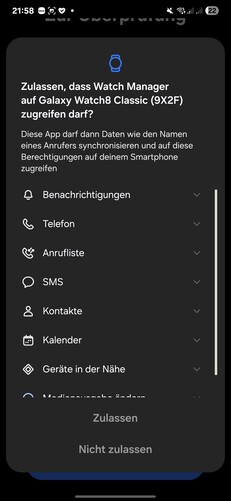 When first powered on, the Galaxy Watch8 Classic is automatically detected by Android smartphones. Setup is handled through the Samsung Wear app, which requires an additional plugin for the watch. A Google account is mandatory, and numerous permissions must be granted during installation.