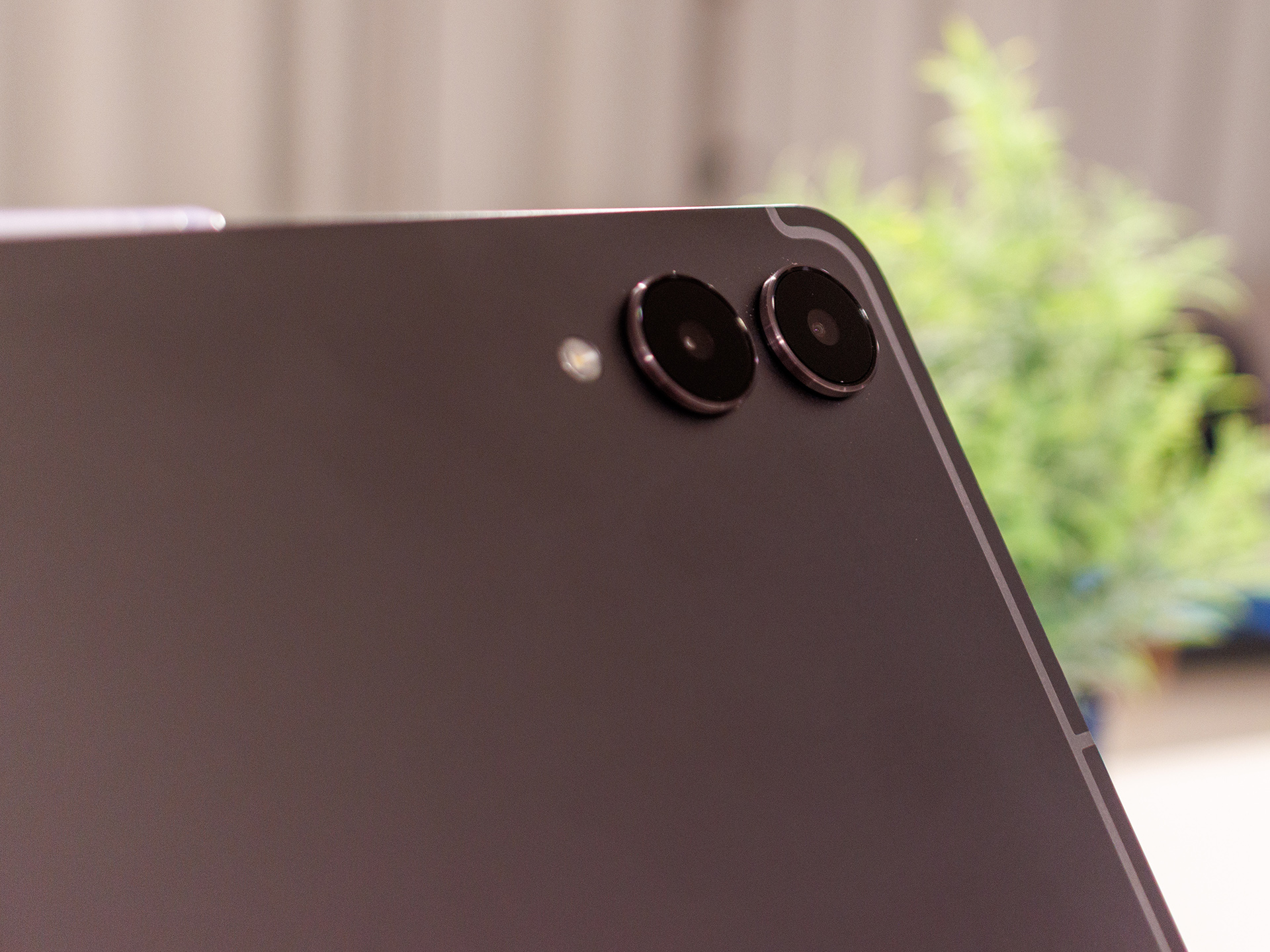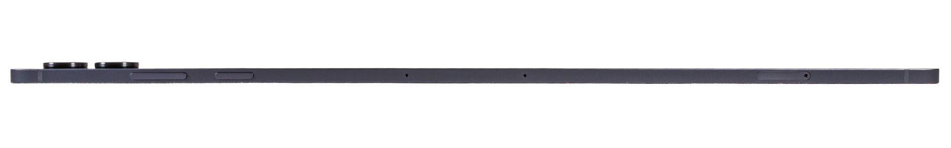 The predecessor model's already slim case has been made even thinner in the Samsung Galaxy Tab S11 Ultra, now with a specification of only 5.1 millimeters in thickness, while we actually measured a thickness of just 5.05 millimeters. The two cameras protrude by 2.15 millimeters each, but the device hardly wobbles when lying flat on a table.