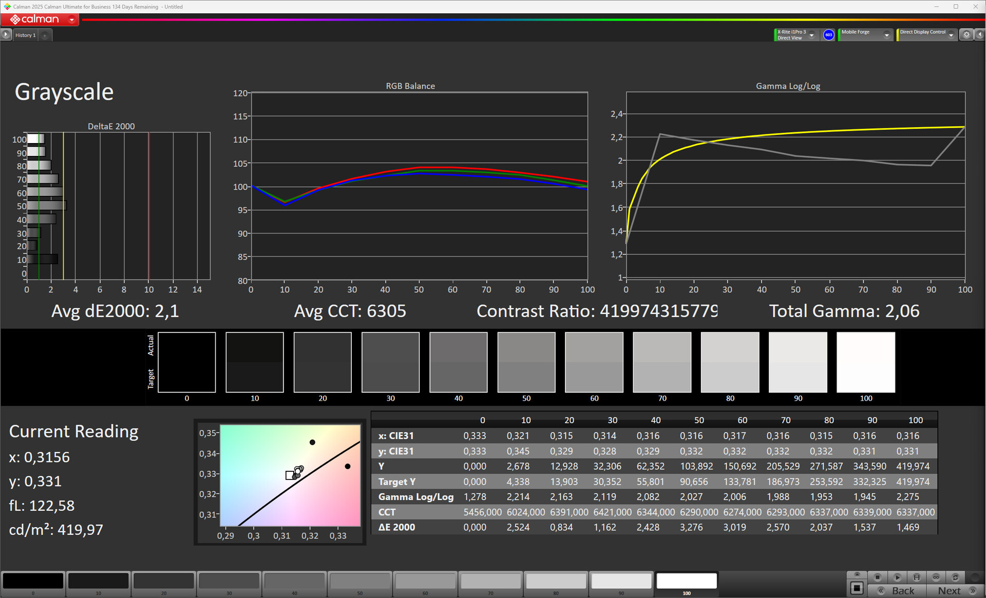 ΔE Greyscale Calman: 2.1 | ∀{0.09-98 Ø5.1}