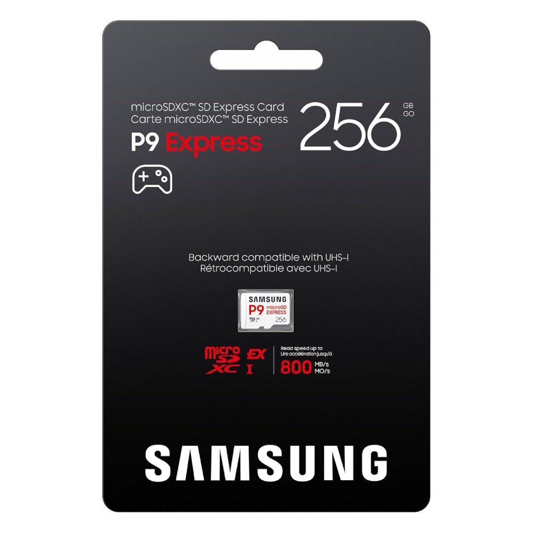 The Samsung P9 Express microSD Express Card boasts sequential read speeds of up to 800 MB/S. It also features a technology called Dynamic Thermal Guard (DTG) which prevents the microSD card from overheating during use.