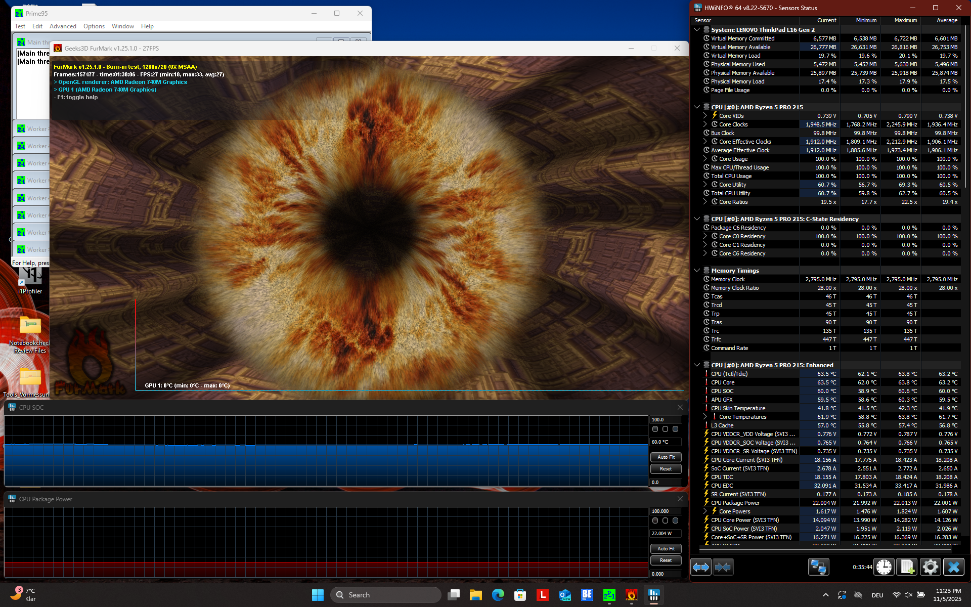 | Lenovo ThinkPad L16 Gen 2 21SC0029GE R5 PRO 215, Radeon 740M, Kioxia BG6 KBG6AZNV512G, LED IPS, 1920x1200, 16" | Lenovo ThinkPad L16 Gen 1 21L70010GE R7 PRO 7735U, Radeon 680M, SK Hynix HFS001TEJ9X164N, IPS, 1920x1200, 16" | HP EliteBook 8 G1a 16 AI Ryzen AI 7 PRO 350, Radeon 860M, Micron 3500 MTFDKBA512TGD, IPS, 1920x1200, 16" | Lenovo ThinkPad T16 Gen 4 21QQS06M00 Ryzen AI 7 PRO 350, Radeon 860M, SK hynix PC801 HFS001TEJ9X162N, IPS, 1920x1200, 16" | Lenovo ThinkBook 16 G7 QOY 21NH0005GE SD X Plus X1P-42-100, Adreno X1-45 1.7 TFLOPS, WD PC SN740 512GB SDDPMQD-512G-1101, IPS LED, 1920x1200, 16" | Average AMD Radeon 740M | Average of class Office | |