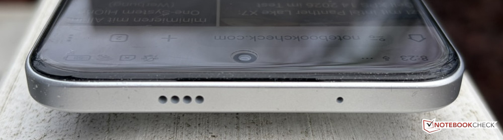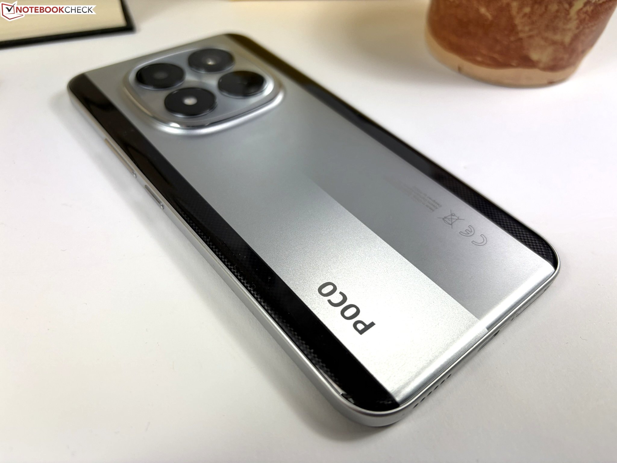 The display glass, which has an additional protective film, is made of Gorilla Glass Victus 2 and is slightly rounded at the corners and edges. Together with the very narrow display edges on all sides, this gives the Xiaomi phone a very high-quality look. An aluminum frame connects the front and back and the Poco M8 Pro 5G is also dust and waterproof thanks to its IP68 certification.