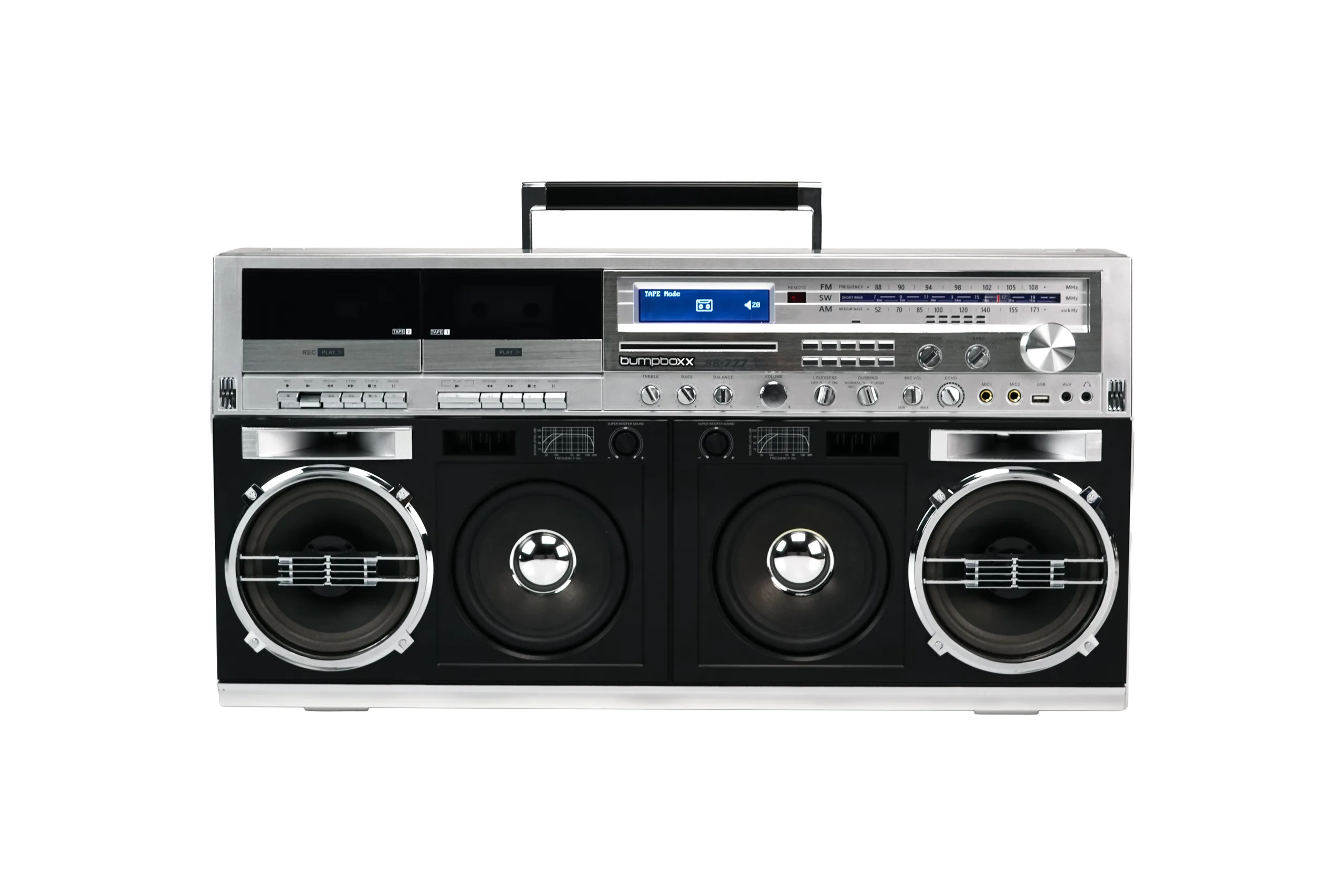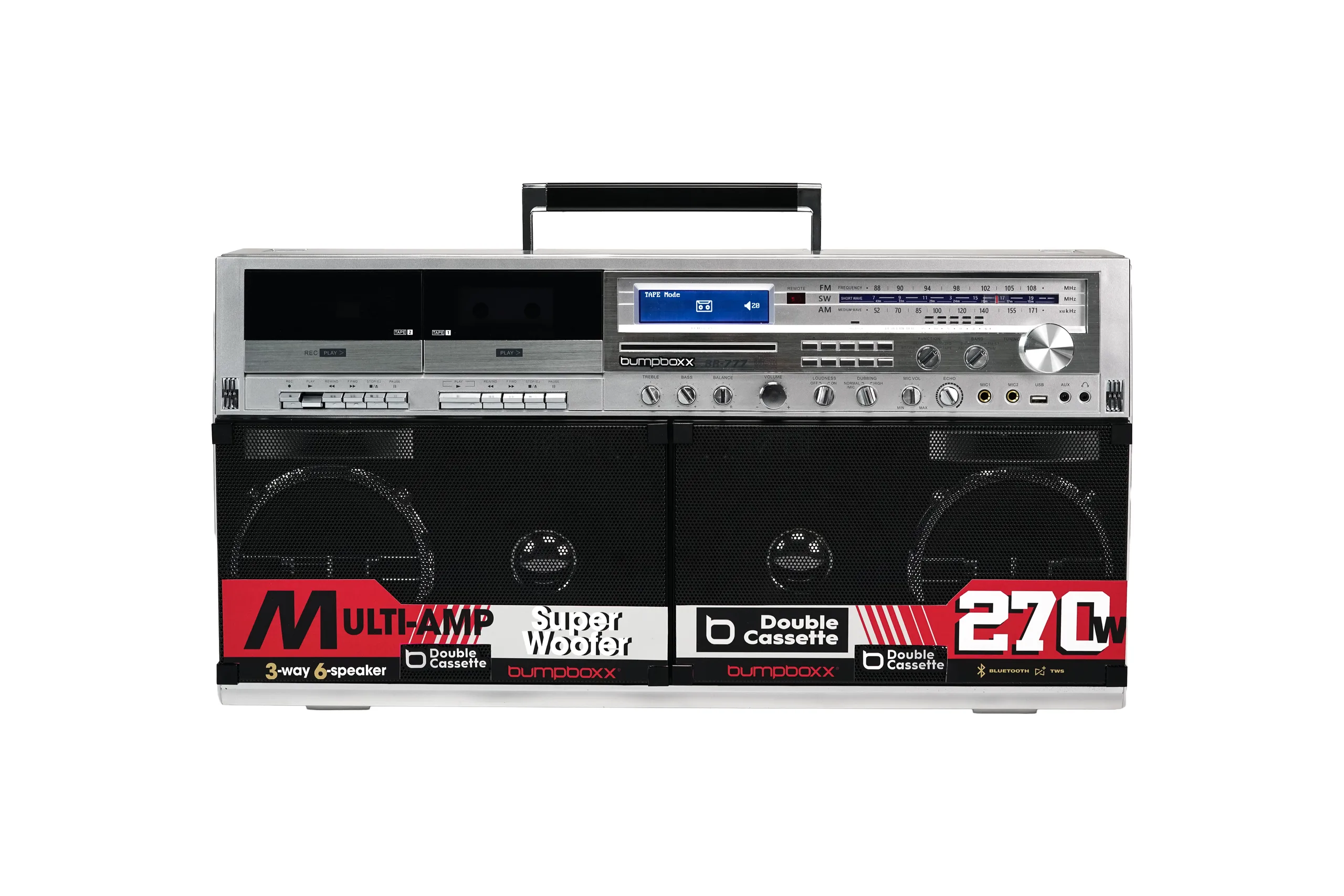 LOS ANGELES, CA – Bumpboxx proudly announces the launch of the BB-777, a high-powered portable boombox that unites classic analog formats with modern digital performance in one fully integrated sound system. Delivering up to 270 watts of power through a multi-speaker architecture featuring dual super woofers, precision tweeters, and a chambered bass enclosure, the BB-777 produces deep, room-filling sound with unmistakable physical presence.