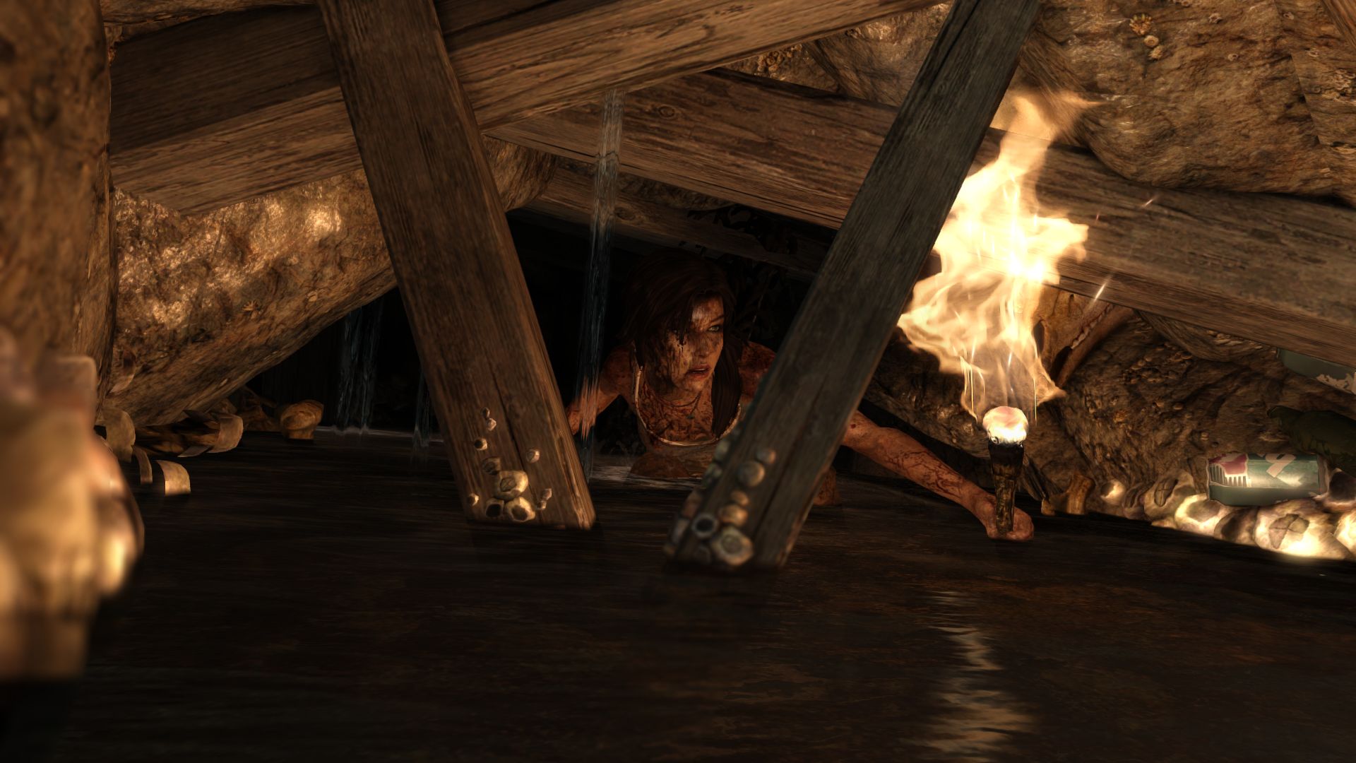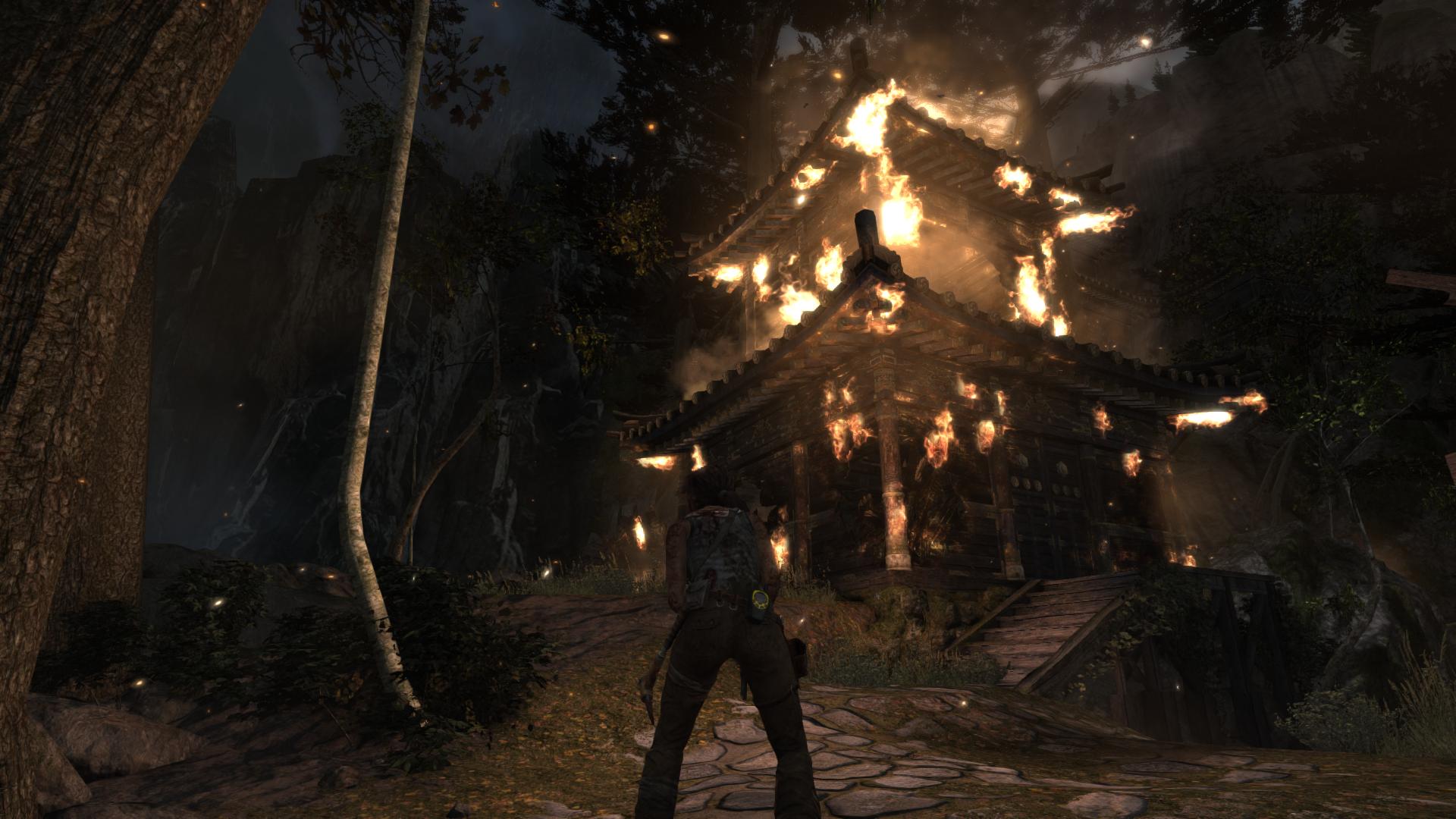 Does the initial situation remind you of another action game? The overall story isn't the only thing Tomb Raider and the recently released Far Cry 3 have in common. As our several hour long test session revealed, there are several parallels between the Square Enix and Ubisoft productions. Both, for instance, start off with a survival atmosphere. After the female protagonist escapes from the clutches of a strange cult, armed with nothing but a torch, we need to find a suitable fire pit where the wounded woman can warm herself.