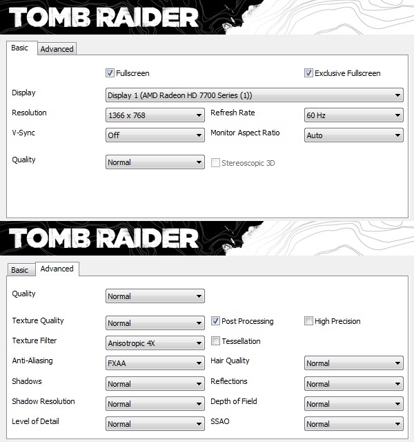 AMD's hair technology TressFX is only activated at the "Ultimate" preset by default. In order to ensure equal opportunities we limited ourselves in the review to the presets "Low", "Normal", "High", and "Ultra".