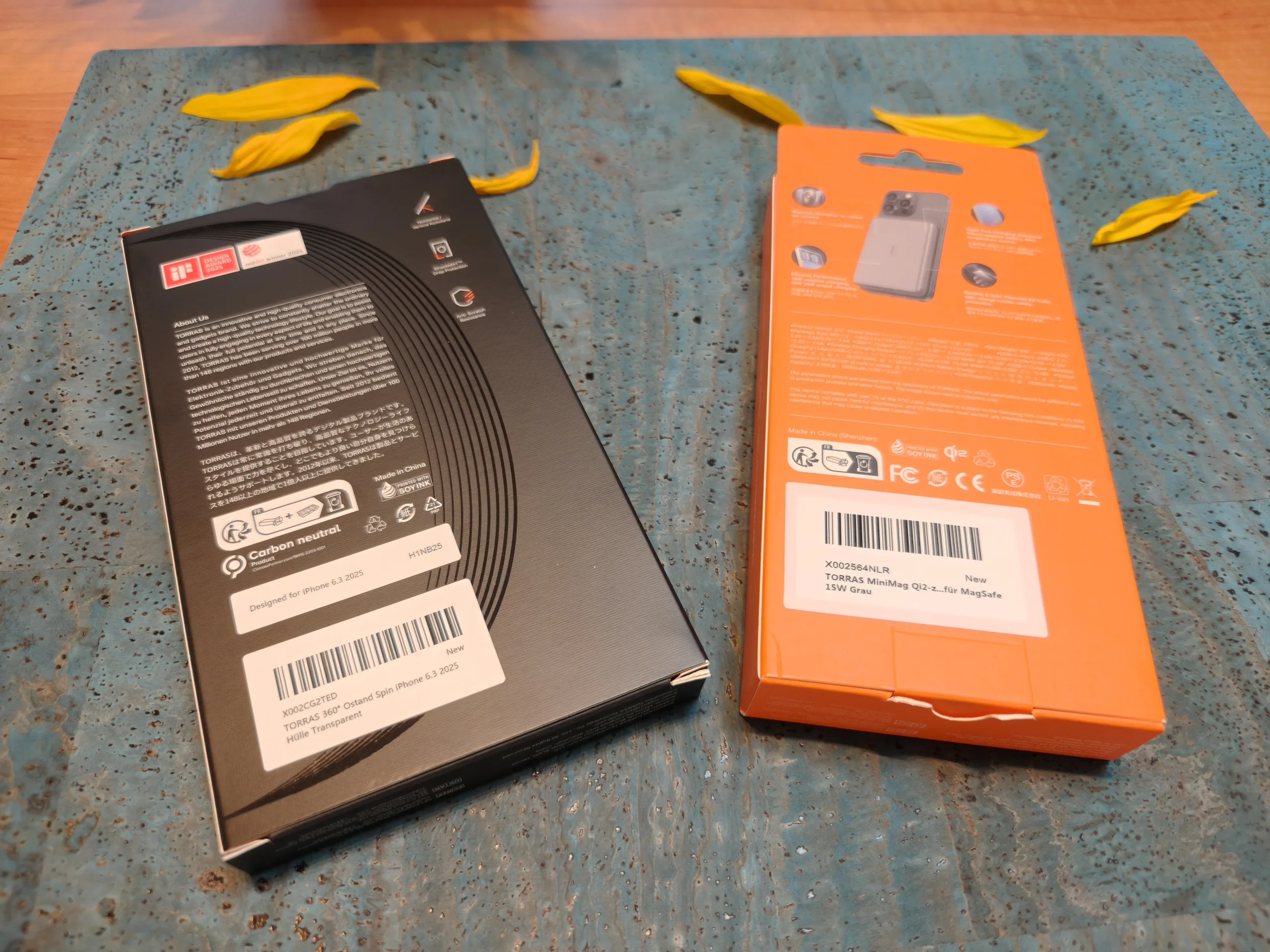 The phone cases and power banks from Torras come in very slim packaging printed with environmentally friendly soy ink. Unfortunately, the inside still uses plastic trays and films.