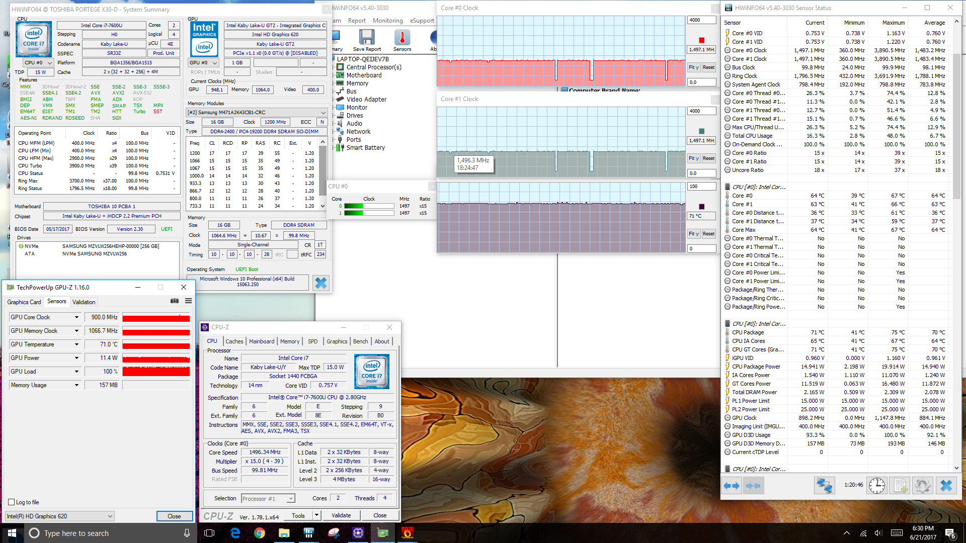 | Toshiba Portege X30-D (PT274U-01N001) HD Graphics 620, i7-7600U, Samsung PM961 MZVLW256HEHP | Lenovo ThinkPad X1 Carbon 2017-20HQS03P00 HD Graphics 620, i7-7500U, Samsung PM961 NVMe MZVLW512HMJP | Lenovo ThinkPad T470s-20HF0012US HD Graphics 620, i5-7300U, Samsung PM961 MZVLW256HEHP | Apple MacBook 12 2017 HD Graphics 615, m3-7Y32, Apple SSD AP0256 | HP Spectre 13-v131ng HD Graphics 620, i7-7500U, Samsung PM961 NVMe MZVLW512HMJP | Dell XPS 13 9360 FHD i7 Iris Iris Plus Graphics 640, i7-7560U, Toshiba XG4 NVMe (THNSN5512GPUK) | |