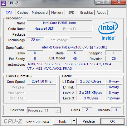 The R50 is equipped with Intel's Core i5-4210U (1.7 GHz; 2.7 GHz Turbo @ single-core). The dual-core processor (Haswell) is a mainstream model with a good value-for-money ratio. It is the top model for the R50; the i3-4005U, Pentium 3558U, and Celeron 2957U have lower performances.