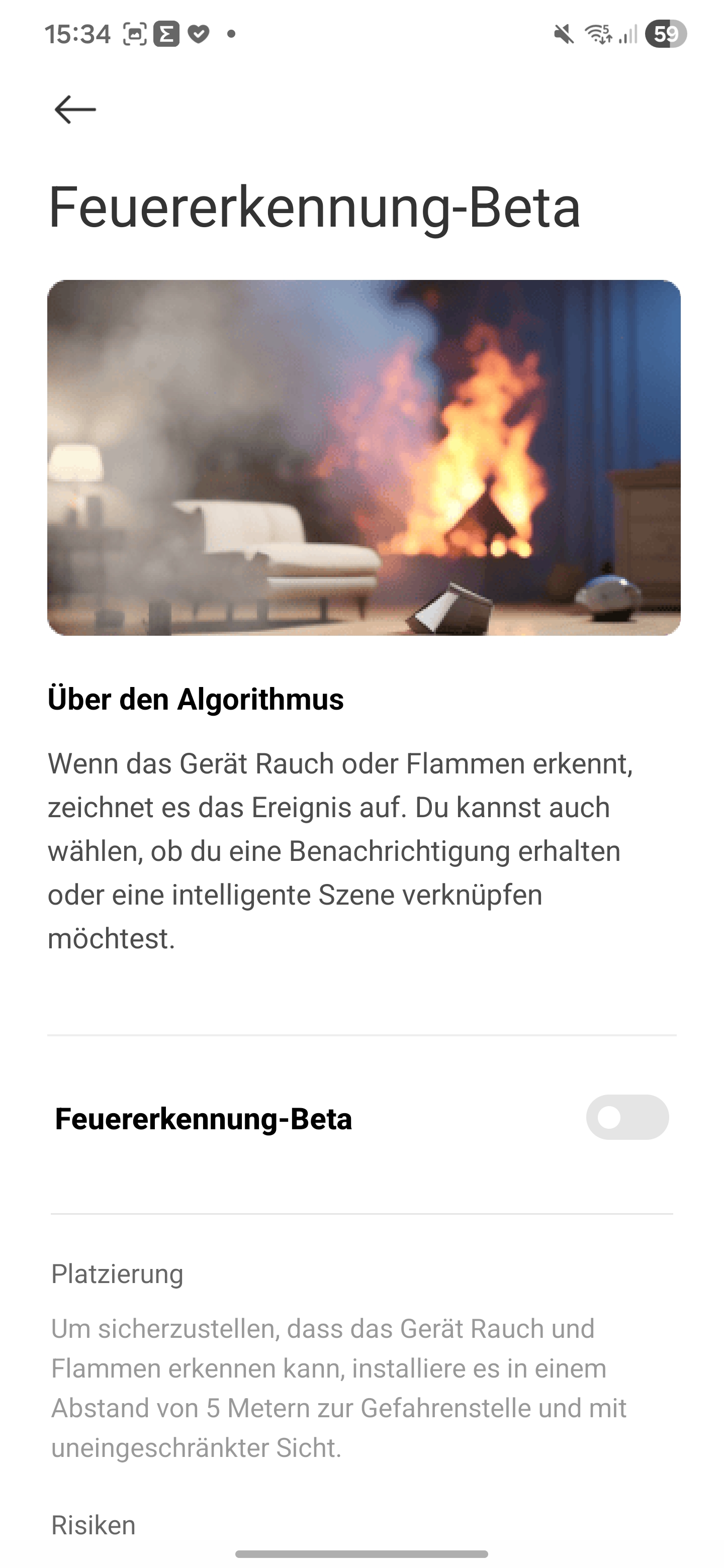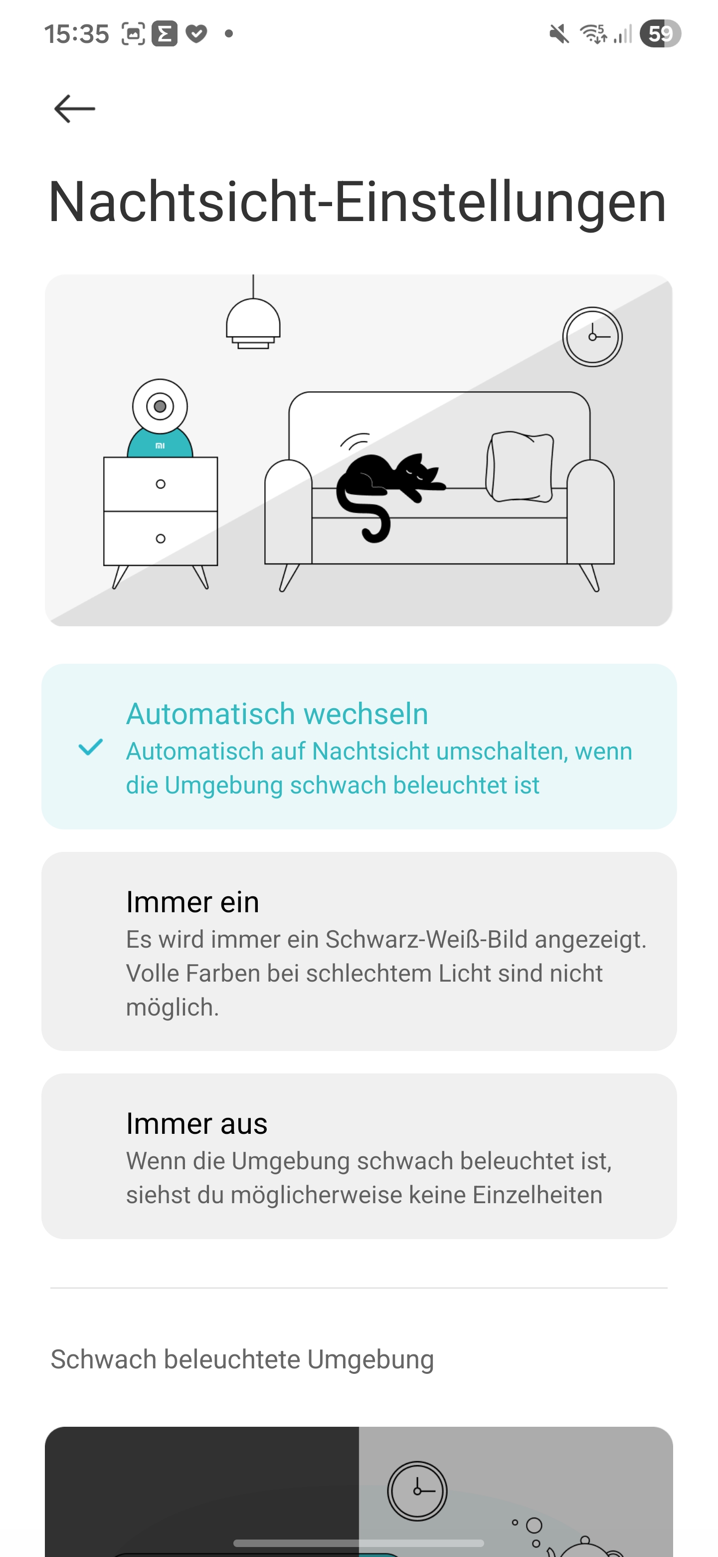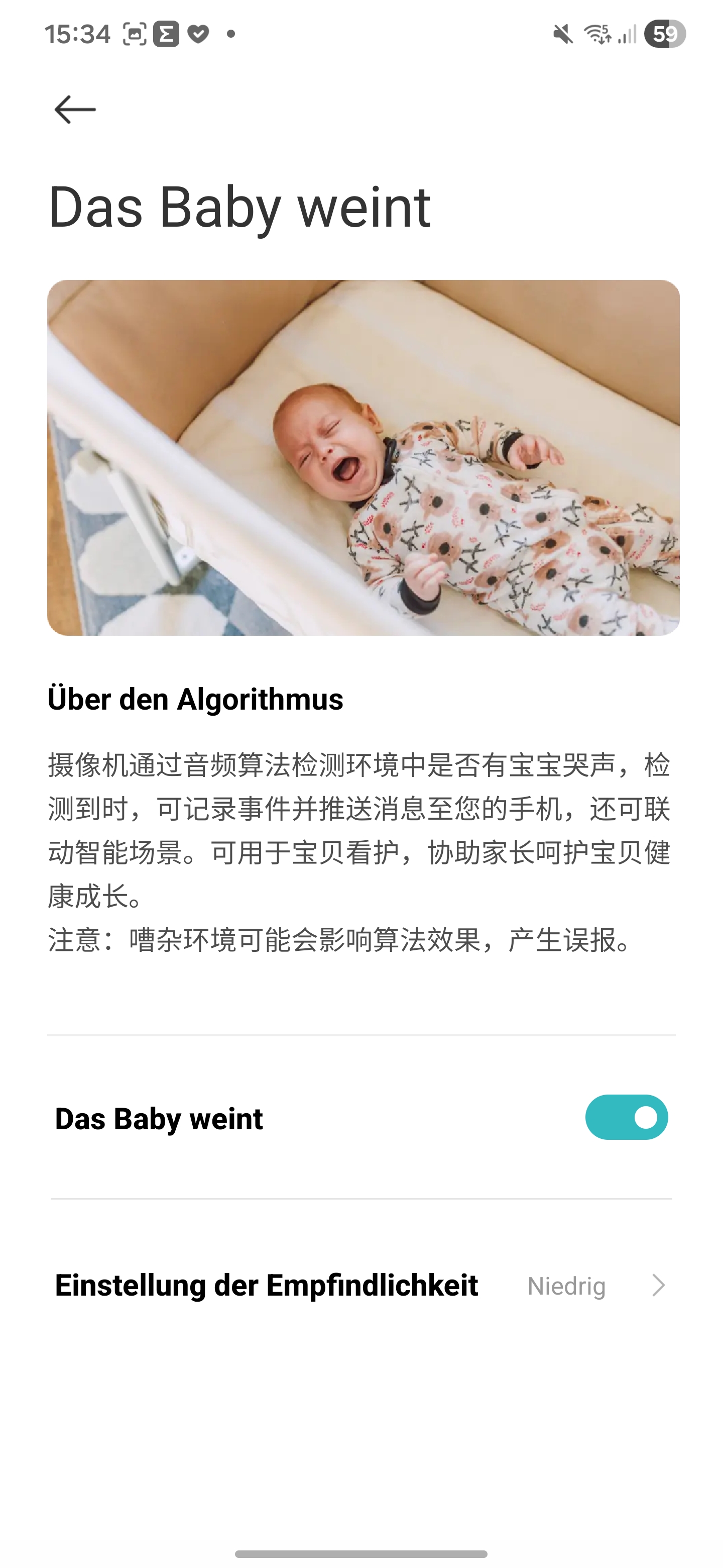 The camera is designed to automatically distinguish between people and pets. The software is also intended to detect baby cries and unusual noises. In our test, children playing triggered alerts for both baby crying and unusual noise. In addition, parts of the software have not yet been fully translated.