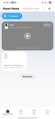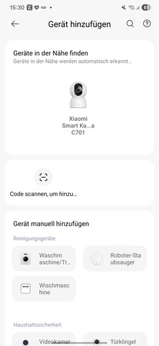 The Mi Home app is required for setup. When searching for a new device, the camera appeared immediately in our test and could be paired without any issues. To complete the process, the QR code on the underside of the camera must be scanned.