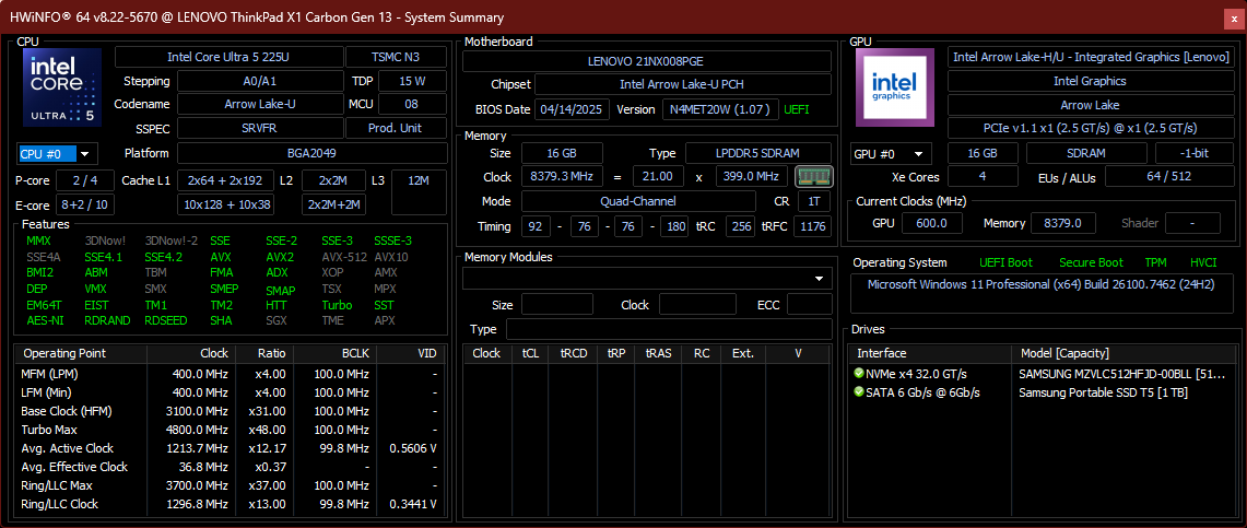 Even the weight significantly increases. On the plus side, users get the WWAN option in this case, and Arrow Lake supports 64 GB of RAM instead of just 32 GB. But, if you need neither of these features, never buy the Arrow Lake U version of the X1 Carbon over the one with Lunar Lake. It is just not the same user experience.
