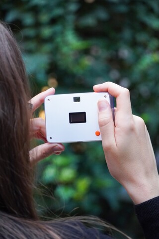 This display is also the only indication that the Await Camera is digital rather than analog. Rolling Square, the Swiss company behind the Await Camera, promises a user experience more akin to a film camera than a smartphone. Once a digital "film roll", which holds 24 photos, has been used up, the film must be changed via the smartphone app. The photos cannot be viewed at this point, but instead a print can be ordered – the photos are then sent directly to the camera owner.