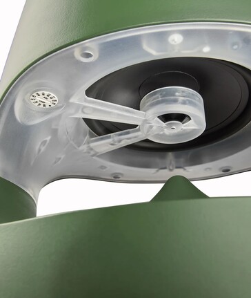 The newly announced Triangle Garden 7 outdoor speaker is housed in a relatively understated enclosure, available in either green or grey. Rated IP66, the device is well protected against dust and rain. Thanks to the integrated LED with an output of 105 lumens, the speaker can also double as garden lighting at night.