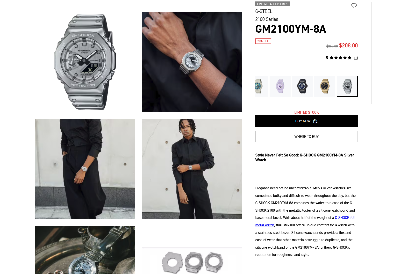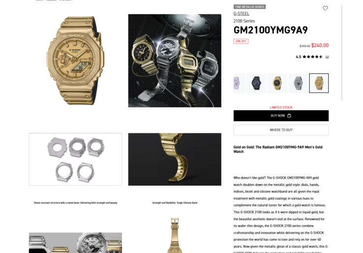 In a fresh deal, Casio’s metal-accented 2100 series models are currently listed at 20% off - bringing the silver GM2100YM-8A down to $208 (from $260) and the gold-tone GM2100YMG-9A9 to $240 (from $300). Both are marked as limited stock.