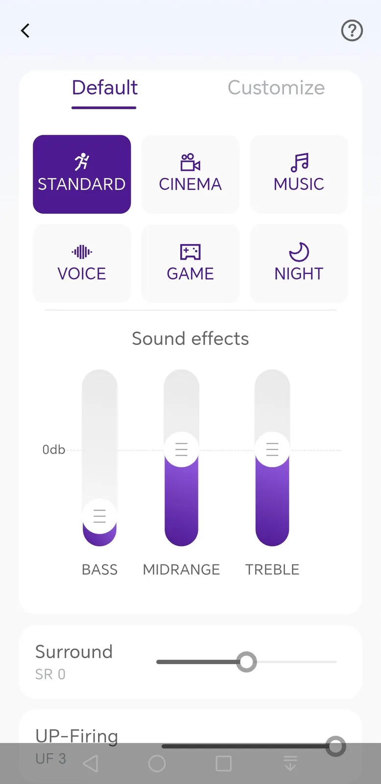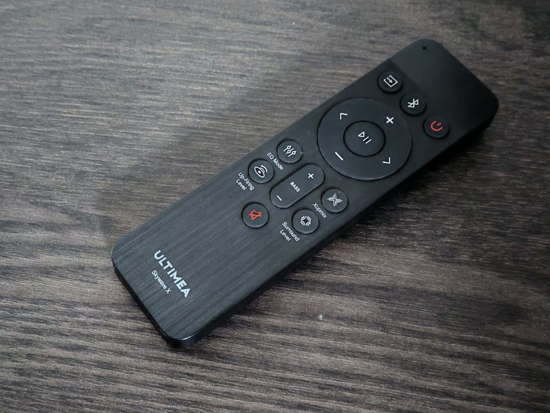 On top of the soundbar are buttons for source selection, power on/off, and volume control. The remote control offers the same functions and also includes buttons for quick equalizer selection, adjusting bass intensity, the strength of the up-firing drivers, the surround effect, and activating Xupmix. The remote feels fairly robust, but it is otherwise unremarkable.