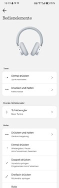 The hardware controls are intuitive and easy to use: The right ear cushion has a tactile dial for volume/play-pause (turn/swipe). The left earbud houses the power button and the bass boost slider. The app extension shines with equalizers, personalized sound curves, and update notifications. There is also a button to activate the voice assistant.