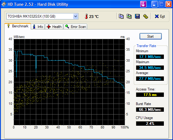 Transfer rate maximum: 34.5/34.5 MB/sec