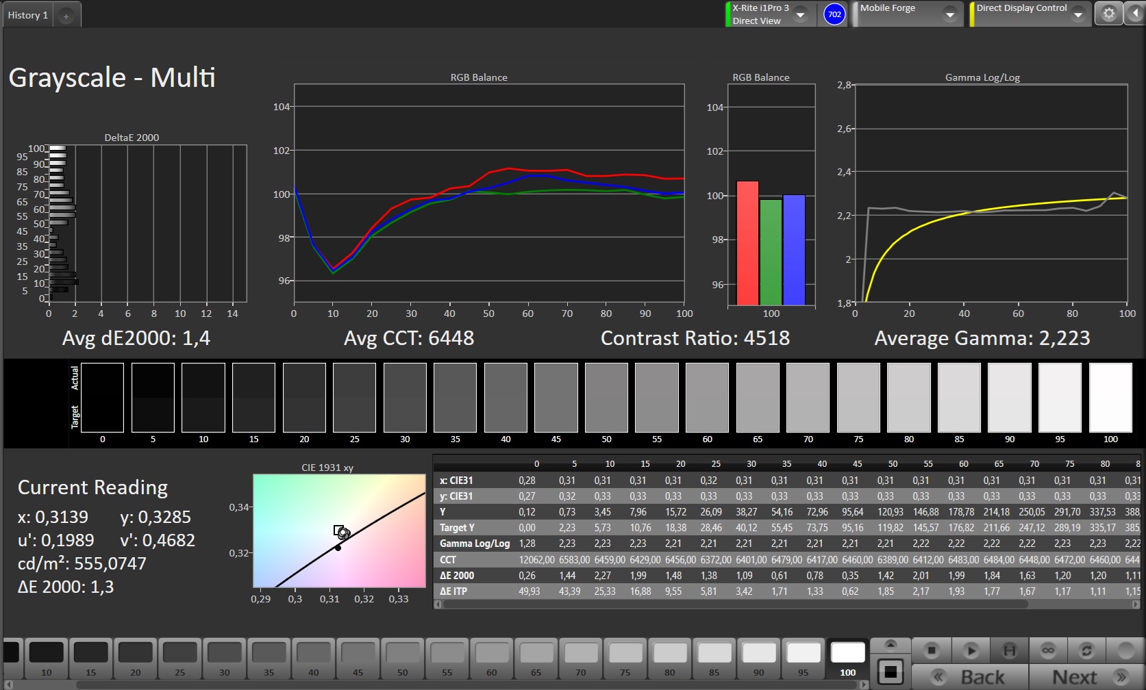 Our display analysis showed only very minor deviations in sRGB and grayscale reproduction.