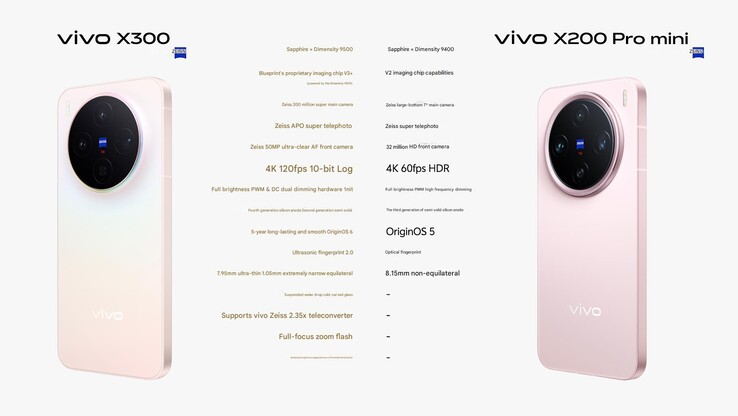Vivo itself confirms that the Vivo X300 is not a direct successor to the Vivo X200 but rather to the Vivo X200 Pro Mini, as an official specs sheet is comparing it directly to the previous compact Zeiss camera flagship. This list compares some important specifications of the compact Pro Mini with the new Vivo X300.