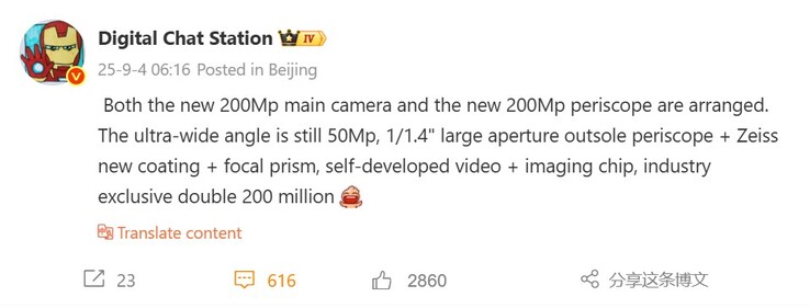 Accordingly, next year's Zeiss camera flagship will feature a 200MP main camera and an additional 1/1.4-inch 200 MP sensor for the periscope telephoto lens, with a large aperture also mentioned. The size of the main camera's sensor has not yet been disclosed, but it is not unlikely that the rumored 1/1.1-inch Sony sensor will be installed here, which is also likely to be installed in the Xiaomi 16 Ultra behind the telephoto lens.