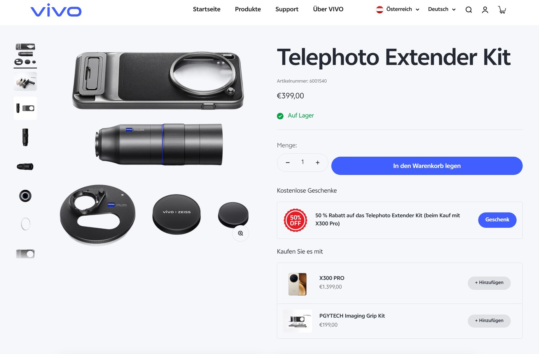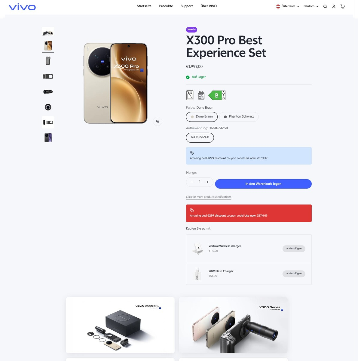 As we discussed earlier this week, Oppo has priced the Find X9 and Find X9 Pro at €999 and €1,299 in the Eurozone. For some reason, Vivo has applied a €50 surcharge on its comparable smartphones, despite bringing them to market later than Oppo. As a result, the X300 series will start at €1,049 in the Eurozone before including accessories like a Telephoto Extender Kit, which will retail for €399, making it €50 cheaper than Oppo's equivalent. However, Vivo will offer various discount codes at launch, which should reduce prices across the board. Please see the images below for more details.