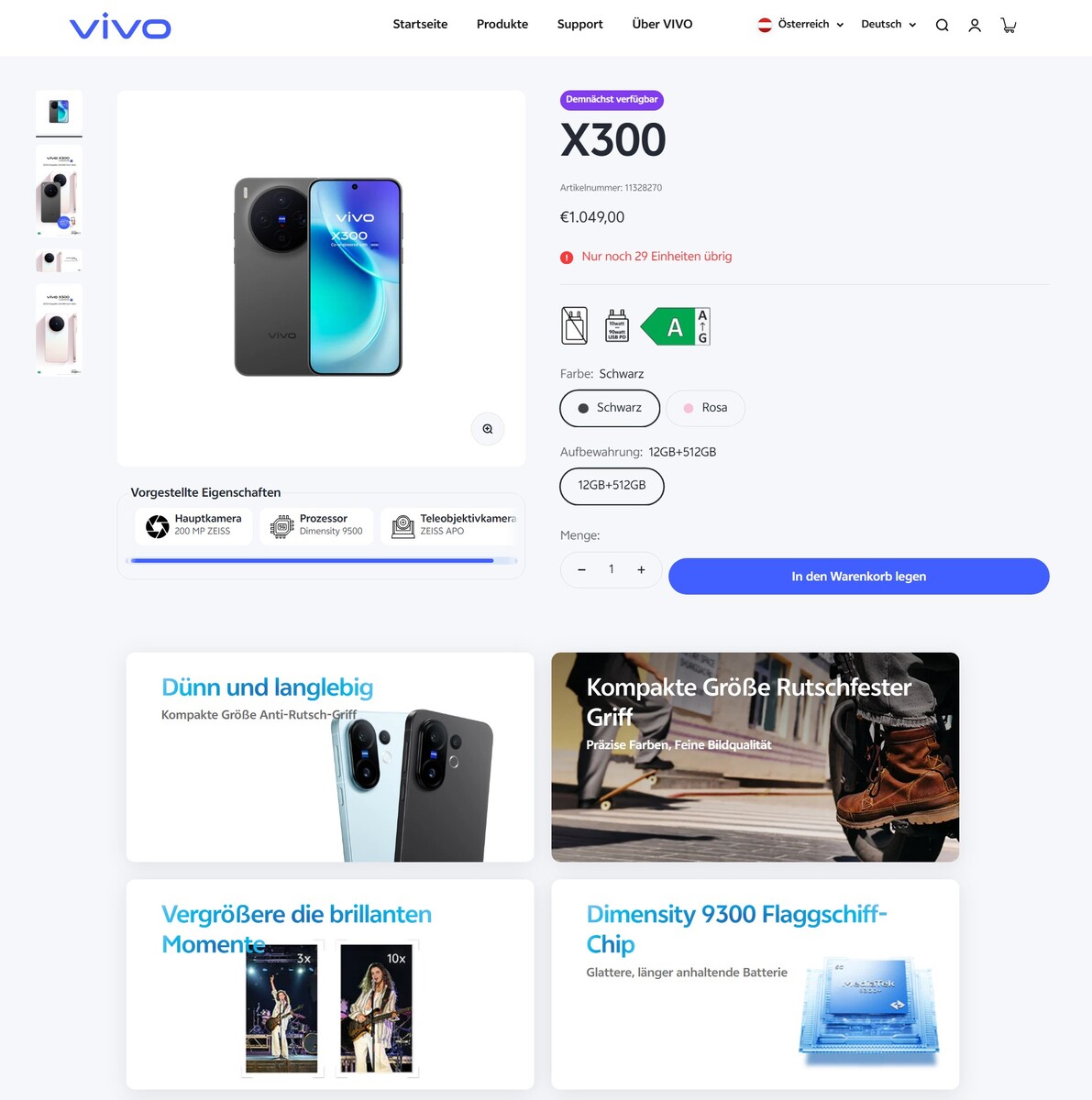 The Vivo X300 and X300 Pro are on the verge of being presented globally following their launches earlier this month in China. In the meantime, Vivo itself has been spotted confirming Eurozone pricing information ahead of schedule.