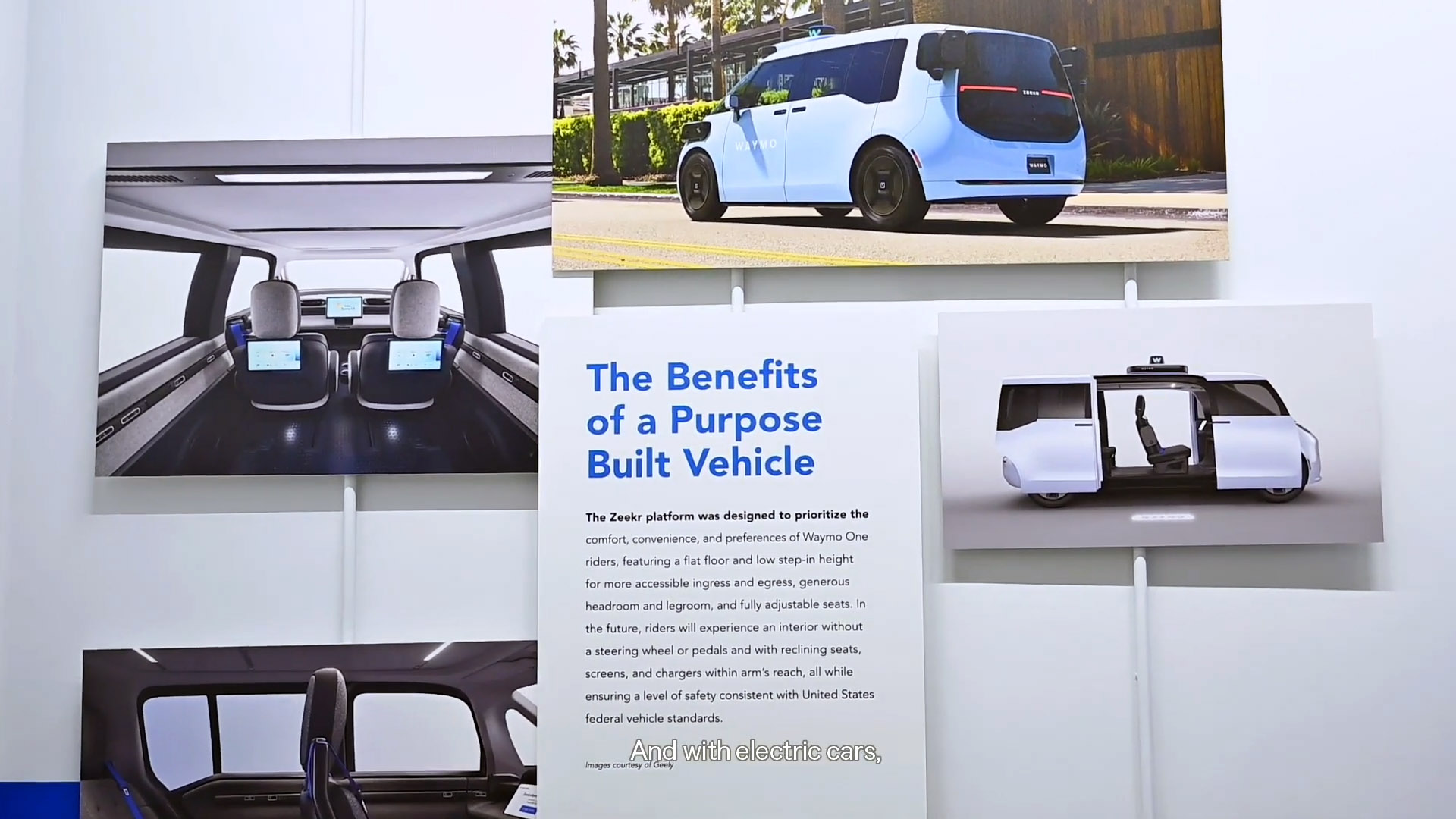 The Zeekr robotaxi display at the Petersen Automotive Museum, however, says that it plans to remove the steering wheel and pedals from Waymo's RT robovan when federal regulations allow it "in the future."