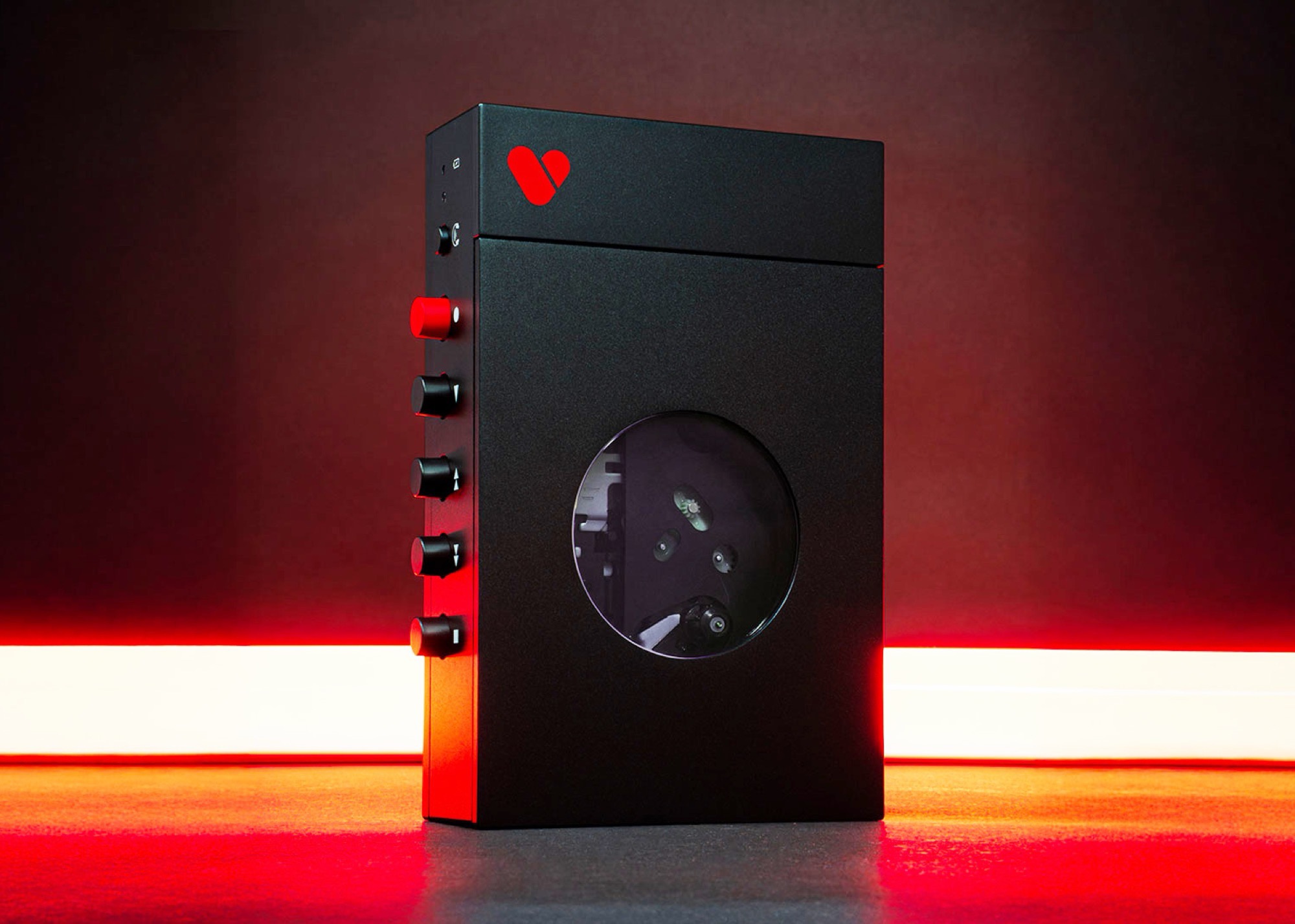 The We Are Rewind WE-001 cassette player has always been available in a range of bright colors, but the new Elvis Limited Edition is arguably the most striking design variant yet. The casing is matte black, with a button and the Rewind logo in a red accent color. The back panel features a giant "Elvis" logo.